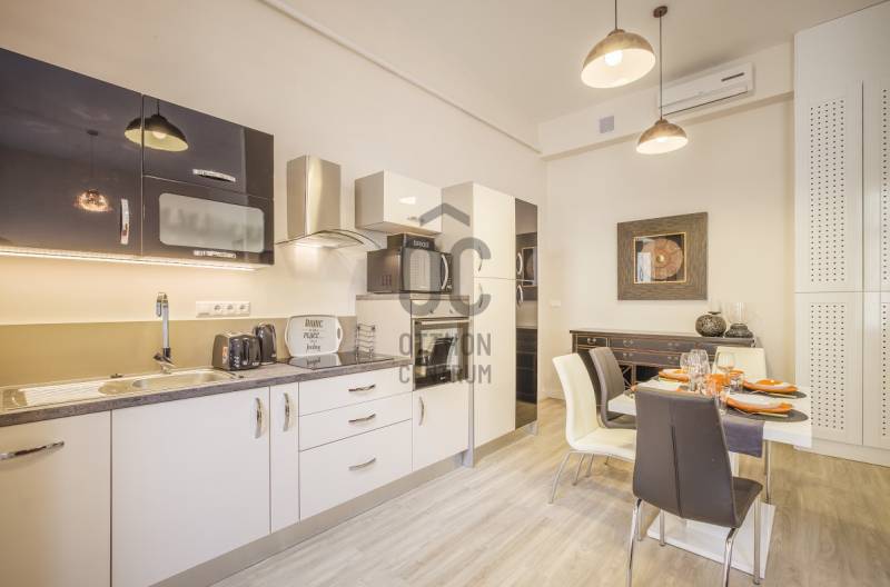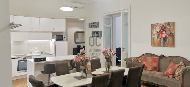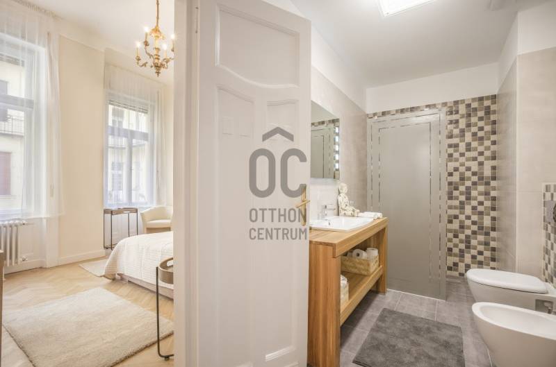 A Deák tér és az Astoria között, egy impozáns épületben található az ingatlan, mely három önálló lakásra lett kialakítva. Az összenyitása is megoldható, mert úgy lett kialakítva, ezért szét-vagy összeköltözőknek, irodának, rendelőnek, kiadásra tökéletes választás!Ingatlan:- 234 nm, 3,8 m belmagasságú, felújított, gáz-cirkó fűtésű, inverteres klímás 8 szobás, 3 fürdőszobás+WC-s, 2 önálló WC+kézmosós, teraszos lakás.- A szobák, részben utcai-részben pedig udvari nézetűek.- Az ingatlan egy akadálymentes, liftes társasház, II. emeletén helyezkedik el.Környezet:A legfelkapottabb része a fővárosnak, ahol sétatávolságra van a Zsinagóga, az Andrássy út, a Belváros, a Madách tér, az Astoria.