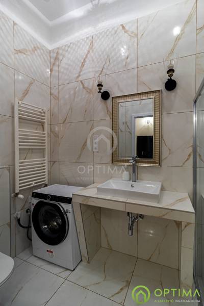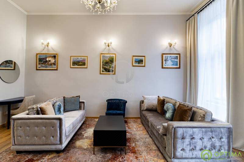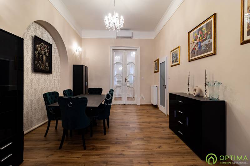 TELJESKÖRŰEN FELÚJÍTOTT, 2 SZOBÁS LAKÁS A PALOTANEGYEDBEN Budapest VIII. kerületének legkeresettebb városrészében, a Palotanegyedben, a Szentkirályi utcában kínálom megvételre ezt a 95 m2 alapterületű, I. emeleti, 2 szobás téglalakást. A ház külső és belső homlokzata is kiváló állapotban van. A lakás egy külön zárt folyosóról közelíthető meg, így csak 1 közvetlen szomszéd van. A lakás TELJES KÖRŰ felújításon esett át ebben az évben: - cserére kerültek a vezetékek (villany-, gáz- és vízvezetékek egyaránt), - beépítésre kerültek új hang- és hőszigetelő műanyag ablakok, - cserére kerületek a burkolatok a konyhában és a fürdőben egyaránt, - beépítésre került egy gépesített konyhabútor,- kialakításra került a cirkó fűtés, - beépítésre került légkondicionáló. A közös költség összege havonta 29.000 Ft, amely tartalmazza a szokásos tételeket, mint a LIFT használatot, a szemét elszállítását, a lépcsőház tisztántartását. A közüzemi fogyasztások mind egyedi mérőórák alapján kerülnek elszámolásra. A KÉPEKEN LÁTHATÓ BÚTOROK ÉS BERENDEZÉSI TÁRGYAK A VÉTELÁR RÉSZÉT KÉPEZIK. Az ingatlan BELVÁROSI elhelyezkedésének köszönhetően BEFEKTETÉSI céllal való vásárlása is kitűnő választás lehet. A lakás megtekintése miatt VÁROM HÍVÁSÁT akár hétvégén vagy az esti órákban egyaránt!