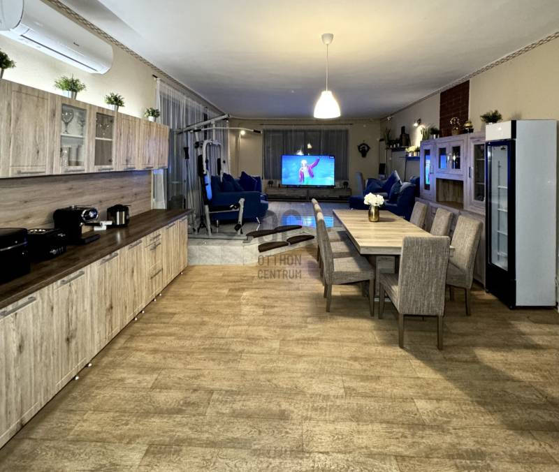 Kecskemét egyik legértékesebb, villanegyedi részén eladó egy önálló, földszintes, bruttó 183 m²-es, 3 szobás téglaépítésű polgári családi ház, amely egy 648 m²-es, összközműves telken található, közvetlenül a Széchenyi körútra néző elhelyezkedéssel.Az ingatlan jó állapotú, dupla terasszal, 2,95 m-es belmagassággal, új elektromos hálózattal, valamint DNY tájolással rendelkezik, így egész nap világos és barátságos az otthon.Fűtéséről gázkazán és 4 darab hűtő–fűtő klíma gondoskodik, továbbá H-tarifa is rendelkezésre áll. A ház bútorozottan eladó, azonnal költözhető.A tetőtér hivatalos tervrajzzal rendelkezik így beépíthető, további bővítési lehetőséget kínál. A telken található továbbá fúrt kút, egy 11 m²-es melléképület, ipari áram, Type 2 elektromosautó-töltő, valamint egy 5 méteres elektromos úszókapu is. A ház rendelkezik 35m2-es jól használható pincével is, amely kiváló tárolásra, illetve műhelynek.Az ingatlan ideális családosoknak, akik kényelmes otthont keresnek, de befektetésre, céges irodának, társasház kialakítására, bemutatóteremnek, vagy bármilyen ipari tevékenységhez is tökéletesen alkalmas.Ritka lehetőség Kecskemét egyik legjobb környékén.Bővebb információért várom jelentkezését! Jöjjön el, nézzük meg együtt!Ha a vásárláshoz a jelenlegi ingatlana eladására van szükség, akkor abban is szívesen együttműködőm Önnel!