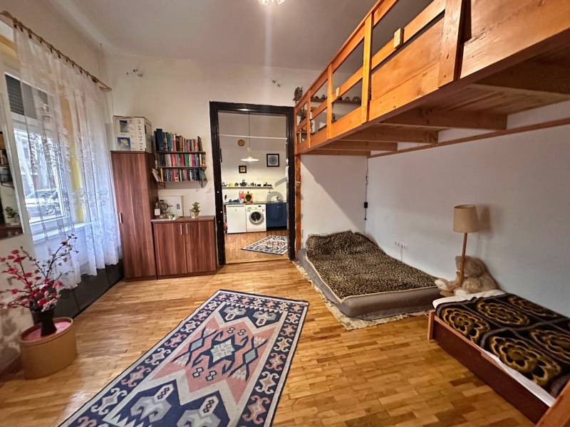 Eladó a 15.kerületi Bocskai utcában ez a 39m2-es kis garzon!Jó lokáció, jó közlekedés !Fontosabb információk:- 39m2-es jogilag megosztási szerződéssel rendelkező házrész,- a közös udvarban ez az első lakás, ezen kívül kettő szomszéd van,- van egy majd 6m2-es fekvő galéria,- belmagasság 346cm,- fűtése jelenleg kettő klímával történik,- nyílászárói műanyagra lettek cserélve,- villamoshálózata is ki lett cserélve, és rézvezetékek lettek húzva,- a lakás feletti tetőtér beépíthető, ez a megosztási szerződésben szerepel is,- külön wc, kézmosóval kialakításra került,- fürdő jelenleg nincs kialakítva, a konyhai résznél látható módon van megoldva a zuhanyfülke így hitelre nem alkalmas!- tehermentes, azonnal költözhető.További kérdés esetén keressen bizalommal!
