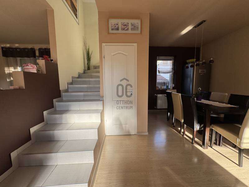 Fót az északi agglomeráció dinamikusan fejlődő városa, történelmi múlttal és ehhez méltó csodálatos kultúrkörrel rendelkezik a Fővárostól egy karnyújtásnyira.Gyönyörűen gondozott köztereivel, nívós intézményeivel, zöld határaival és remek infrastruktúrájával méltán vált a kiköltöző Családok dobogós választásává az elmúlt években.Itt, csendes utca végében került eladósorba egy kiváló adottságú IKERHÁZ.Szélső, sarki épület, így abszolút szeparált, intim kerttel rendelkezik, mely éppen akkora hogy gondozása nem teher és tökéletesen helyet adhat családi BBQ partyknak, létesíthető benne gyermekjátszótér, grillterasz és így is marad hely autóbeállásra valamint a konyhakertnek.Fiatal építésű, ehhez mérten korszerű, dryvit palástba bújtatott homlokzat, gondosan szigetelt födém és tetősík, műanyagtokos thermoüveges nyílászárók és kondenzációs gázkazánról biztosított fűtés. A nyári hőszabályozást klímaegységek segítik, a kerti tárolásra pedig faházikó áll rendelkezésre.2 szinten bruttó 100m2-el gazdálkodik, melyben optimális elrendezés valósult meg:Földszinten kényelmes előszoba, világos, nagy, teraszkapcsolatos nappali, tágas étkező-konyha, lépcső alatti mosókonyha wc-vel valamint a nagy fedett terasz kaptak helyet. Emeleti szinten 3 hálószoba, közlekedő és nagy fürdőszoba alkotják a helyiséglistát. A szobák saját franciaerkéllyel rendelkeznek, a tetőteres kialakítás ellenére jól bútorozhatóak, és kellemes világos életteret biztosítanak Lakóiknak. A fürdőszoba nagy, káddal és zuhanykabinnal is ellátott.Optimális, elrendezés, kényelmes tér, igényes kialakítás!Tökéletes választás azoknak, akik Budapestről kiköltözve vágynak a kertre, akik családalapítás céljából keresgélik új Otthonukat és olyan környezetben képzelik el a jövőjüket ahonnan a közlekedés megoldott, a szomszédság rendezett, a ház pedig fiatalos és nem kell hozzányúlni még jó pár évig!Jöjjön el, tekintse meg, FRISSEN VAN PIACON és biztos hogy nem sokáig!-alaprajz feltöltése folyamatban-