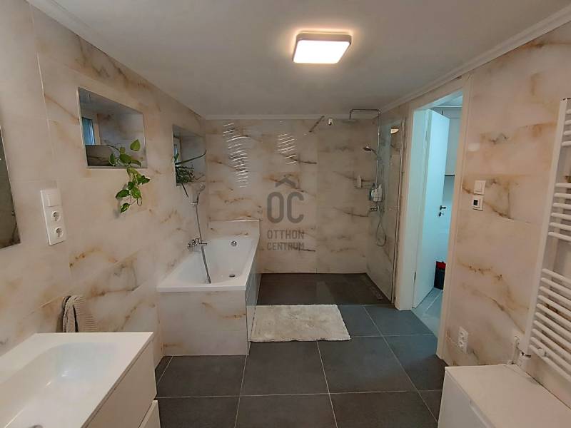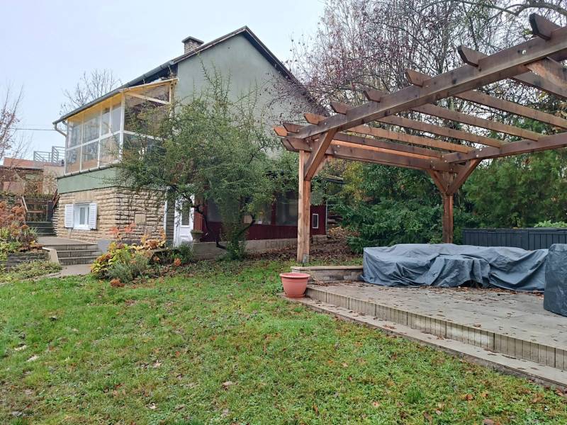 Ezt a gondosan karbantartott, felújított ingatlant látnod kell! Ha csendes, természetközeli környezetre vágysz, mégis Budapest közelében maradnál, akkor ez az ingatlan remek választás lehet.A telek és a külső tér:-769 m² gondozott kert rengeteg dísznövénnyel-Automata öntözőrendszer-15 m²-es, vörösfenyőből készült kerti kiülő-Elektromos kapu, fedett kocsibeálló-Tüzifatároló, fészer-Utcán ingyenes parkolásKözművek:-Villany: 3×20A-Víz: bekötve-Szennyvíz: emésztő-Csatorna az utca egy részén már rendelkezésre áll, bővítése folyamatbanAz épület és a műszaki állapot:-Homlokzat és padlástér szigetelt-Korszerű elektromos hőtárolós kályhák (éjszakai áramról)-Hűtő-fűtő klíma-Fürdőben padlófűtés + törölközőszárító-Konyhában és étkezőben elektromos panel + modern fatüzelésű hőtárolós kályha-2021-ben cserélt, 3 rétegű műanyag nyílászárók-Teljes gépészeti felújítás: új villanybojler, vezetékek, fűtésrendszer, klíma, beépített konyhai gépekKülönlegesség:Az emeleten található egy fűthető, hangulatos télikert, ahonnan gyönyörű panoráma tárul elénk!Helyiségek – 90 m² nettó lakótérFöldszint:-Fedett terasz (9 m²)-Konyha + étkező (18 m²)-Spájz (3,65 m²)-Folyosó + lépcső (8,35 m²)-Mosókonyha (3 m²)-Fürdő + WC (9,4 m²)Emelet:-Hálószoba (16,8 m²)-Nappali (12,8 m²)-Lépcsőforduló (5,5 m²)-Télikert (11,3 m²)Hívjon bizalommal a részletekért!