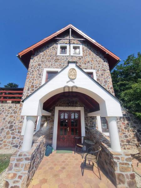 KIEMELT MEGBÍZÁS AZ OTTHON CENTRUM KÍNÁLATÁBAN!Ábrahámhegy festői környezetben a Balaton északi partján a nyugat felől magasodó Örsi hegy és a Tapolcai-medence tanúhegyeinek karéjában fekszik. A táj ősidők óta hazája a szőlőnek és a bornak és a nyári időszakban itt található a környék egyik legkedveltebb fürdőhelye is.A település egyik legmagasabb pontján vált eladóvá ez a különleges kialakítású, Balaton-felvidéki hangulatot árasztó ingatlan a hozzá tartozó 2067 m²-es szőlős területtel.A terület télen-nyáron jól járható úton közelíthető meg, teljesen körbekerített. A telekre betelepített Szürkebarát szőlő folyamatosan gondozott, karbantartott. Az utcafronti részt terméskő kerítés határolja, ez a kőmunka folytatódik az autófeljárón és a támfalakon, valamint a ház egészét is helyi \"vöröskő\" burkolja körbe, így kölcsönözve egyedi és tájba illő hangulatot a birtoknak.A gazdasági épületként bejegyzett ház 2005-ben épült, 3 szinten összesen 146 m²-es hasznos területtel rendelkezik. Az 50 cm-es kő-tégla falakkal rendelkező masszív épület szintjei épületen belül átjárhatóak. A házba hűtő-fűtő klímák kerültek betelepítésre, melyek áramellátását a kiépített napelemrendszer biztosítja, ezenfelül a fűtés a ház alsó- és földszinti részén fatüzelésű kályha használatával is kiegészíthető.A ház szintenkénti elosztása:Alsó szint: konyha, étkező, nappali/ háló, fürdőszoba, tároló, egyedi kialakítású, hangulatos borospinceFöldszint: nappali, étkező, konyha, fürdőszoba, lépcsőház és terasz.Emelet: 3 hálószoba és előszobaA házban riasztórendszer került kiépítésre. Az áram valamint a vezetékes víz bevezetésre került, szennyvíz derítő áll rendelkezésre a szennyvízelvezetéshez. Az esővíz gyűjtésére 2 ciszterna is kialakításra került, melyekből a locsolás könnyedén megoldható.A földszinti részhez kapcsolódó - nyári időszakban plusz életteret biztosító - hatalmas teraszról, de a telekről és a ház egészéből is teljes rálátást kapunk az előttünk elterülő Balaton vizére!A zárt parkolórészen és fedett kocsibeállón több autó egyidejű parkolása is lehetséges.Ajánlom az ingatlant mindazok figyelmébe,akik a \"béke szigetét\" keresik távol a mindennapoktól. A ház tökéletes nyaralónak, turisztikai befektetésként is vonzó lehet és állandó lakhatásra is alkalmas!Amennyiben kérdése merülne fel az ingatlannal kapcsolatban vagy szeretné azt megtekinteni, kérem keressen a megadott elérhetőségek egyikén!