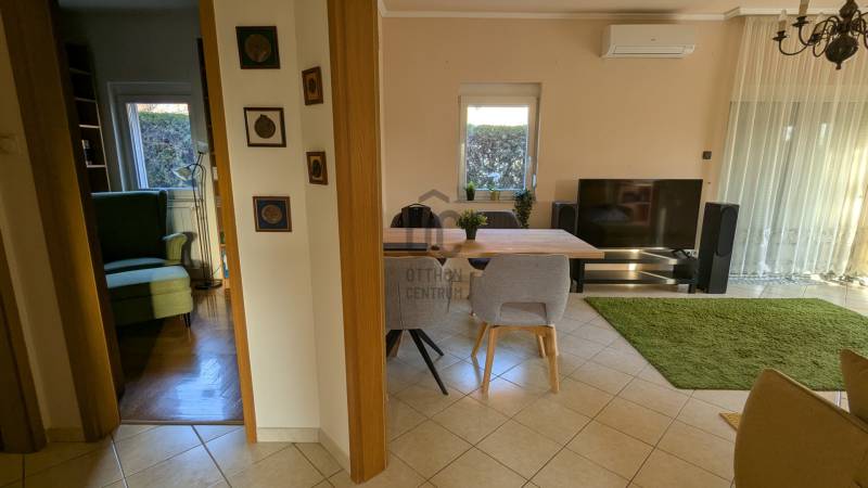 Eladó igényes, saját részre épített családi ház Budafok csendes részén – 108 m² + 36 m² mélygarázs, gyönyörű parkosított kerttelBudafok legfelkapottabb kertvárosi részén, a Tegzes utca környékén lévő, csendes kis utcában, egy 760 m²-es, saroktelken elhelyezkedő, gondosan megépített, kiváló állapotú családi ház eladó. Az ingatlan 2006-ban saját részre épült, pince + földszint kialakítású, összesen a garázzsal együtt 132 m² hasznos alapterülettel.Főbb jellemzők:-Alapterület: 132 m² (nappali + helyiségek + garázs) +25 m² terasz-Telek mérete: 760 m² – gondozott, parkosított kerttel, gyümölcsfákkal, kerti sütögetővel-Építés éve: 2006-Energetikai besorolás: DElosztás, helyiségek:-Tágas nappali-2 hálószoba + 1 félszoba (dolgozó/gardrób célra is alkalmas)-Gardróbszoba-Külön konyha + kamra-10 m²-es fürdőszoba (zuhanyzó + kád)-Külön WC-25 m²-es déli fekvésű terasz közvetlen kertkapcsolattal és sziklakerttelGépészet, extrák:-Fűtés: Gázkazán padlófűtéssel + radiátorokkal-Melegvíz ellátás: Napkollektor + melegvíz-tartály (puffertartályos rendszer)-3 db hűtő-fűtő klímaberendezés-Vízlágyító berendezés-Riasztórendszer-Műanyag nyílászárók redőnnyel, fa beltéri ajtók-Burkolatok: parketta és járólap kombináció-Hőszigetelt padlásfödém-Falazat: tégla, 10 cm külső szigeteléssel-Tető: Bramac betoncserép, sátortetős kialakítás, napkollektorral a déli oldalonParkolás, garázs:-36 m²-es, fűtött mélygarázs, elektromos garázskapukkal – akár 2 autó számára-Kerti beálló egy további autónak-Automata kapu és garázsajtókKözművek:-Teljes összközműves ellátottság: víz, villany, gáz, csatorna-Elektromos kapu és riasztó rendszerKiváló közlekedés: Mindössze 10 perc alatt elérhető Kelenföld vasútállomás és a 4-es metró végállomása, így a város bármely pontja könnyen megközelíthető. Autóval több útvonalon keresztül is gyorsan elérhető a belváros, míg az Allee bevásárlóközpont és a budaörsi nagyáruházak mindössze 10–15 perces autóútra találhatók. Közelben lévő buszjáratok: 150, 150B, 250, 250B, 251, 251A, 251BEz a Budafok kertvárosi részén található ingatlan tökéletes választás családok számára, akik minőségi kivitelezésű, jól megtervezett otthont keresnek nyugodt környezetben, mégis kiváló közlekedéssel és infrastruktúrával.Ne hagyja ki ezt a remek lehetőséget – tekintse meg személyesen is!