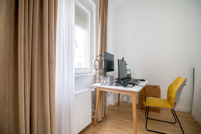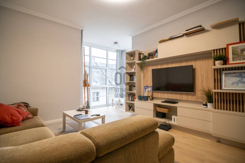 Eladó egy 93 m²-es, 4 szobás, kiváló állapotú, tágas társasházi lakás Lágymányos egyik legjobb részén. A lakás a teljes 5-ik emeleten egyedül helyezkedik el, így rendkívüli privát, csendes, zárt érzetet biztosít – valódi ritkaság a környéken.A ház liftes, a lépcsőház és a közös területek rendezettek, karbantartottak. A fűtés házközponti egyedi méréssel, a lakás délnyugati tájolású, utcai nézettel.Parkolás: a ház alatt található magánteremgarázsban időszakosan bérelhető vagy vásárolható beálló (kb. 30.000 Ft/hó-tól). A környéken ez nagy előny.Helyiségek: tágas nappali (24 m²), három különnyíló szoba, nagy étkezős konyha (16 m²), fürdő + WC, külön WC, gardrób, közlekedők.Nappalija szuper világos, mivel az erkély rész teljesne be lett építve és ott fal helyett végig üveg van. Állapot: lakás – kiváló, homlokzat – jó, lépcsőház – kiváló.Lokáció: Bartók Béla út – galériák, kávézók, BME/ELTE, Móricz és Gellért tér pár perc sétára. Közlekedés kiemelkedő: 4-6, 19, 49-es villamos, gyorsbuszok.Birtokbaadás: max. 4 hónap, de akár hamarabb is lehetséges.Az ingatlan a Hűség értékesítési csomag keretében érhető el, amelynek részleteiről szóban tudunk egyeztetni. Keressen bizalommal, ha megtekintené.Ez az ingatlan a \"Hűség csomag\" megbízási portfólióhoz tartozik. Részletek az Otthon Centrum weboldalán.