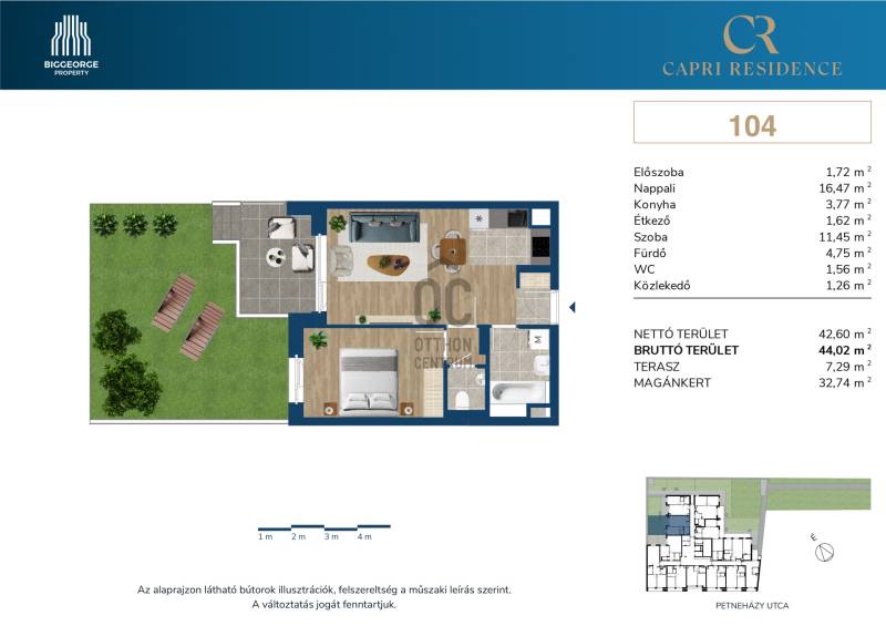 Projekt bemutatásaA Capri Residence a XIII. kerület szívében, a dinamikusan fejlődő Váci út közvetlen közelében valósul meg, amely Budapest egyik legkeresettebb lakáspiaci területe. Az elegáns, modern megjelenésű épületet, a homlokzatán végigfutó üvegkorlátos teraszok díszítik majd, a felsőbb szinteken pedig nagyteraszos lakások is elérhetők, amelyek egy része panorámás kilátást biztosít.Az épületben összesen 112 lakás kap helyet, amelyek elrendezése a stúdiótól a nappali plusz három hálószobásig terjednek. Az épületben emellett egy közösségi tér, 122 parkolóhely, 62 tároló, valamint opcionálisan elektromos autótöltővel szerelt teremgarázs beállók is megépítésre kerülnek.A műszaki felszereltség a legmagasabb szakmai trendeket követi: a Capri Residence lakóinak kényelmét mennyezeti hűtés-fűtés, háromrétegű üvegezéssel ellátott műanyag nyílászárók, smart-home előkészítés, valamint belsőépítész által összeállított belső anyagválaszték biztosítja majd. A földszinti lakásokhoz privát kertkapcsolat tartozik, emellett a társasház közös díszkerttel is rendelkezik.