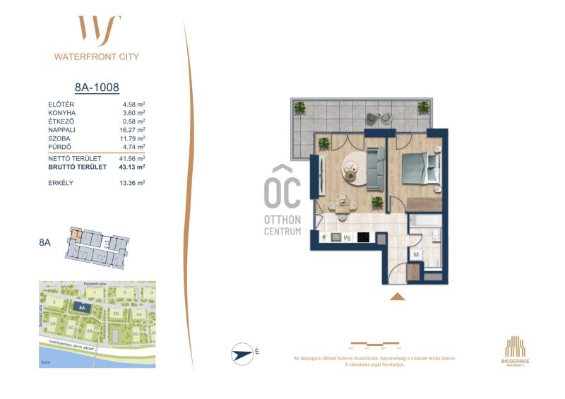 Projekt bemutatásaA projektrőlA Waterfront City egy új, modern városnegyed a 3. kerületben, ahol a természet közelsége és a városi kényelem tökéletes egyensúlyban van. A Duna-part közvetlen szomszédságában elhelyezkedő fejlesztés különleges atmoszférát kínál: a sétányt új épületek határolják, üzletekkel, kávézókkal és szolgáltatásokkal, amelyek élhető közösségi teret teremtenek.A 13 emeletes lakóépületből lenyűgöző örökpanoráma nyílik a budai hegyekre és a folyóra, a tágas teraszok pedig ideálisak a pihenéshez vagy a baráti összejövetelekhez. A zöldtetők, parkosított terek és fenntartható megoldások – mint az energiatakarékos rendszerek és okos otthon funkciók – mind hozzájárulnak a modern, környezettudatos életstílushoz.Látogass el értékesítési irodánkba, és tekintsd meg a városnegyed makettjét személyesen! Ismerd meg, milyen lesz az élet Budapest egyik legizgalmasabb új fejlesztésében!Óbuda szívébenKépzeld el, ahogy egy napsütéses délelőttön Óbuda szívében sétálsz, a Duna közelsége frissítően hat rád, miközben a Folyamőr utca, a Miklós tér és a Bogdáni út által határolt, öt hektáros területre érsz. A levegőben ott van a város történelme, mégis minden részletében a jövő hívogat.A 50 000 négyzetméteres területen egy hangulatos sétány vezet végig, amely egyenesen az óbudai Fő térre visz – mindössze 600 méterre. Ez a sétány nem csupán összeköt, hanem élményt nyújt: a Kolosy térről induló Óbudai Promenád részeként a város egyik legélhetőbb, legpezsgőbb szakaszán haladsz végig. És ha biciklivel érkeznél? A nemzetközi kerékpárút is itt halad el, Szentendre felé vezetve.Az 5. ütemben épülő 149 lakás mindegyike egyedi hangulatot kínál. Ahogy belépsz egy-egy otthonba, a hatalmas üvegfelületeken át beáradó fény és a tágas, szellős terek azonnal magukkal ragadnak. A kilátás? A Kaszap István park zöldje nyújt békét, míg a felsőbb emeletekről a Budai-hegység örökpanorámája tárul eléd – minden nap egy új festmény az ablakodban.A 6. ütemben 316 modern lakás épül, tágas teraszokkal és lenyűgöző kilátással a Dunára és a budai hegyekre. A lakók kényelmét őrszolgálat, kamerarendszer, mélygarázs, vendéglátóhelyek, belső park, játszótér és E-autó töltők szolgálják. Ez a projekt utolsó üteme, amely még közvetlen Duna-parti kapcsolattal rendelkezik.