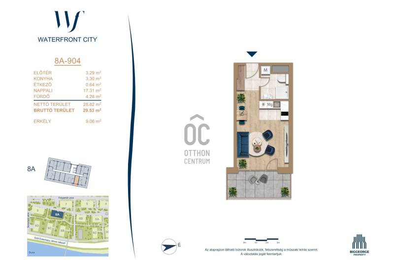 Projekt bemutatásaA projektrőlA Waterfront City egy új, modern városnegyed a 3. kerületben, ahol a természet közelsége és a városi kényelem tökéletes egyensúlyban van. A Duna-part közvetlen szomszédságában elhelyezkedő fejlesztés különleges atmoszférát kínál: a sétányt új épületek határolják, üzletekkel, kávézókkal és szolgáltatásokkal, amelyek élhető közösségi teret teremtenek.A 13 emeletes lakóépületből lenyűgöző örökpanoráma nyílik a budai hegyekre és a folyóra, a tágas teraszok pedig ideálisak a pihenéshez vagy a baráti összejövetelekhez. A zöldtetők, parkosított terek és fenntartható megoldások – mint az energiatakarékos rendszerek és okos otthon funkciók – mind hozzájárulnak a modern, környezettudatos életstílushoz.Látogass el értékesítési irodánkba, és tekintsd meg a városnegyed makettjét személyesen! Ismerd meg, milyen lesz az élet Budapest egyik legizgalmasabb új fejlesztésében!Óbuda szívébenKépzeld el, ahogy egy napsütéses délelőttön Óbuda szívében sétálsz, a Duna közelsége frissítően hat rád, miközben a Folyamőr utca, a Miklós tér és a Bogdáni út által határolt, öt hektáros területre érsz. A levegőben ott van a város történelme, mégis minden részletében a jövő hívogat.A 50 000 négyzetméteres területen egy hangulatos sétány vezet végig, amely egyenesen az óbudai Fő térre visz – mindössze 600 méterre. Ez a sétány nem csupán összeköt, hanem élményt nyújt: a Kolosy térről induló Óbudai Promenád részeként a város egyik legélhetőbb, legpezsgőbb szakaszán haladsz végig. És ha biciklivel érkeznél? A nemzetközi kerékpárút is itt halad el, Szentendre felé vezetve.Az 5. ütemben épülő 149 lakás mindegyike egyedi hangulatot kínál. Ahogy belépsz egy-egy otthonba, a hatalmas üvegfelületeken át beáradó fény és a tágas, szellős terek azonnal magukkal ragadnak. A kilátás? A Kaszap István park zöldje nyújt békét, míg a felsőbb emeletekről a Budai-hegység örökpanorámája tárul eléd – minden nap egy új festmény az ablakodban.A 6. ütemben 316 modern lakás épül, tágas teraszokkal és lenyűgöző kilátással a Dunára és a budai hegyekre. A lakók kényelmét őrszolgálat, kamerarendszer, mélygarázs, vendéglátóhelyek, belső park, játszótér és E-autó töltők szolgálják. Ez a projekt utolsó üteme, amely még közvetlen Duna-parti kapcsolattal rendelkezik.