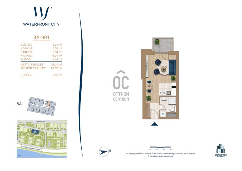 Projekt bemutatásaA projektrőlA Waterfront City egy új, modern városnegyed a 3. kerületben, ahol a természet közelsége és a városi kényelem tökéletes egyensúlyban van. A Duna-part közvetlen szomszédságában elhelyezkedő fejlesztés különleges atmoszférát kínál: a sétányt új épületek határolják, üzletekkel, kávézókkal és szolgáltatásokkal, amelyek élhető közösségi teret teremtenek.A 13 emeletes lakóépületből lenyűgöző örökpanoráma nyílik a budai hegyekre és a folyóra, a tágas teraszok pedig ideálisak a pihenéshez vagy a baráti összejövetelekhez. A zöldtetők, parkosított terek és fenntartható megoldások – mint az energiatakarékos rendszerek és okos otthon funkciók – mind hozzájárulnak a modern, környezettudatos életstílushoz.Látogass el értékesítési irodánkba, és tekintsd meg a városnegyed makettjét személyesen! Ismerd meg, milyen lesz az élet Budapest egyik legizgalmasabb új fejlesztésében!Óbuda szívébenKépzeld el, ahogy egy napsütéses délelőttön Óbuda szívében sétálsz, a Duna közelsége frissítően hat rád, miközben a Folyamőr utca, a Miklós tér és a Bogdáni út által határolt, öt hektáros területre érsz. A levegőben ott van a város történelme, mégis minden részletében a jövő hívogat.A 50 000 négyzetméteres területen egy hangulatos sétány vezet végig, amely egyenesen az óbudai Fő térre visz – mindössze 600 méterre. Ez a sétány nem csupán összeköt, hanem élményt nyújt: a Kolosy térről induló Óbudai Promenád részeként a város egyik legélhetőbb, legpezsgőbb szakaszán haladsz végig. És ha biciklivel érkeznél? A nemzetközi kerékpárút is itt halad el, Szentendre felé vezetve.Az 5. ütemben épülő 149 lakás mindegyike egyedi hangulatot kínál. Ahogy belépsz egy-egy otthonba, a hatalmas üvegfelületeken át beáradó fény és a tágas, szellős terek azonnal magukkal ragadnak. A kilátás? A Kaszap István park zöldje nyújt békét, míg a felsőbb emeletekről a Budai-hegység örökpanorámája tárul eléd – minden nap egy új festmény az ablakodban.A 6. ütemben 316 modern lakás épül, tágas teraszokkal és lenyűgöző kilátással a Dunára és a budai hegyekre. A lakók kényelmét őrszolgálat, kamerarendszer, mélygarázs, vendéglátóhelyek, belső park, játszótér és E-autó töltők szolgálják. Ez a projekt utolsó üteme, amely még közvetlen Duna-parti kapcsolattal rendelkezik.