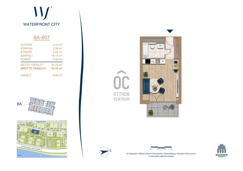 Projekt bemutatásaA projektrőlA Waterfront City egy új, modern városnegyed a 3. kerületben, ahol a természet közelsége és a városi kényelem tökéletes egyensúlyban van. A Duna-part közvetlen szomszédságában elhelyezkedő fejlesztés különleges atmoszférát kínál: a sétányt új épületek határolják, üzletekkel, kávézókkal és szolgáltatásokkal, amelyek élhető közösségi teret teremtenek.A 13 emeletes lakóépületből lenyűgöző örökpanoráma nyílik a budai hegyekre és a folyóra, a tágas teraszok pedig ideálisak a pihenéshez vagy a baráti összejövetelekhez. A zöldtetők, parkosított terek és fenntartható megoldások – mint az energiatakarékos rendszerek és okos otthon funkciók – mind hozzájárulnak a modern, környezettudatos életstílushoz.Látogass el értékesítési irodánkba, és tekintsd meg a városnegyed makettjét személyesen! Ismerd meg, milyen lesz az élet Budapest egyik legizgalmasabb új fejlesztésében!Óbuda szívébenKépzeld el, ahogy egy napsütéses délelőttön Óbuda szívében sétálsz, a Duna közelsége frissítően hat rád, miközben a Folyamőr utca, a Miklós tér és a Bogdáni út által határolt, öt hektáros területre érsz. A levegőben ott van a város történelme, mégis minden részletében a jövő hívogat.A 50 000 négyzetméteres területen egy hangulatos sétány vezet végig, amely egyenesen az óbudai Fő térre visz – mindössze 600 méterre. Ez a sétány nem csupán összeköt, hanem élményt nyújt: a Kolosy térről induló Óbudai Promenád részeként a város egyik legélhetőbb, legpezsgőbb szakaszán haladsz végig. És ha biciklivel érkeznél? A nemzetközi kerékpárút is itt halad el, Szentendre felé vezetve.Az 5. ütemben épülő 149 lakás mindegyike egyedi hangulatot kínál. Ahogy belépsz egy-egy otthonba, a hatalmas üvegfelületeken át beáradó fény és a tágas, szellős terek azonnal magukkal ragadnak. A kilátás? A Kaszap István park zöldje nyújt békét, míg a felsőbb emeletekről a Budai-hegység örökpanorámája tárul eléd – minden nap egy új festmény az ablakodban.A 6. ütemben 316 modern lakás épül, tágas teraszokkal és lenyűgöző kilátással a Dunára és a budai hegyekre. A lakók kényelmét őrszolgálat, kamerarendszer, mélygarázs, vendéglátóhelyek, belső park, játszótér és E-autó töltők szolgálják. Ez a projekt utolsó üteme, amely még közvetlen Duna-parti kapcsolattal rendelkezik.