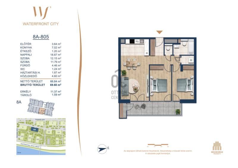 Projekt bemutatásaA projektrőlA Waterfront City egy új, modern városnegyed a 3. kerületben, ahol a természet közelsége és a városi kényelem tökéletes egyensúlyban van. A Duna-part közvetlen szomszédságában elhelyezkedő fejlesztés különleges atmoszférát kínál: a sétányt új épületek határolják, üzletekkel, kávézókkal és szolgáltatásokkal, amelyek élhető közösségi teret teremtenek.A 13 emeletes lakóépületből lenyűgöző örökpanoráma nyílik a budai hegyekre és a folyóra, a tágas teraszok pedig ideálisak a pihenéshez vagy a baráti összejövetelekhez. A zöldtetők, parkosított terek és fenntartható megoldások – mint az energiatakarékos rendszerek és okos otthon funkciók – mind hozzájárulnak a modern, környezettudatos életstílushoz.Látogass el értékesítési irodánkba, és tekintsd meg a városnegyed makettjét személyesen! Ismerd meg, milyen lesz az élet Budapest egyik legizgalmasabb új fejlesztésében!Óbuda szívébenKépzeld el, ahogy egy napsütéses délelőttön Óbuda szívében sétálsz, a Duna közelsége frissítően hat rád, miközben a Folyamőr utca, a Miklós tér és a Bogdáni út által határolt, öt hektáros területre érsz. A levegőben ott van a város történelme, mégis minden részletében a jövő hívogat.A 50 000 négyzetméteres területen egy hangulatos sétány vezet végig, amely egyenesen az óbudai Fő térre visz – mindössze 600 méterre. Ez a sétány nem csupán összeköt, hanem élményt nyújt: a Kolosy térről induló Óbudai Promenád részeként a város egyik legélhetőbb, legpezsgőbb szakaszán haladsz végig. És ha biciklivel érkeznél? A nemzetközi kerékpárút is itt halad el, Szentendre felé vezetve.Az 5. ütemben épülő 149 lakás mindegyike egyedi hangulatot kínál. Ahogy belépsz egy-egy otthonba, a hatalmas üvegfelületeken át beáradó fény és a tágas, szellős terek azonnal magukkal ragadnak. A kilátás? A Kaszap István park zöldje nyújt békét, míg a felsőbb emeletekről a Budai-hegység örökpanorámája tárul eléd – minden nap egy új festmény az ablakodban.A 6. ütemben 316 modern lakás épül, tágas teraszokkal és lenyűgöző kilátással a Dunára és a budai hegyekre. A lakók kényelmét őrszolgálat, kamerarendszer, mélygarázs, vendéglátóhelyek, belső park, játszótér és E-autó töltők szolgálják. Ez a projekt utolsó üteme, amely még közvetlen Duna-parti kapcsolattal rendelkezik.