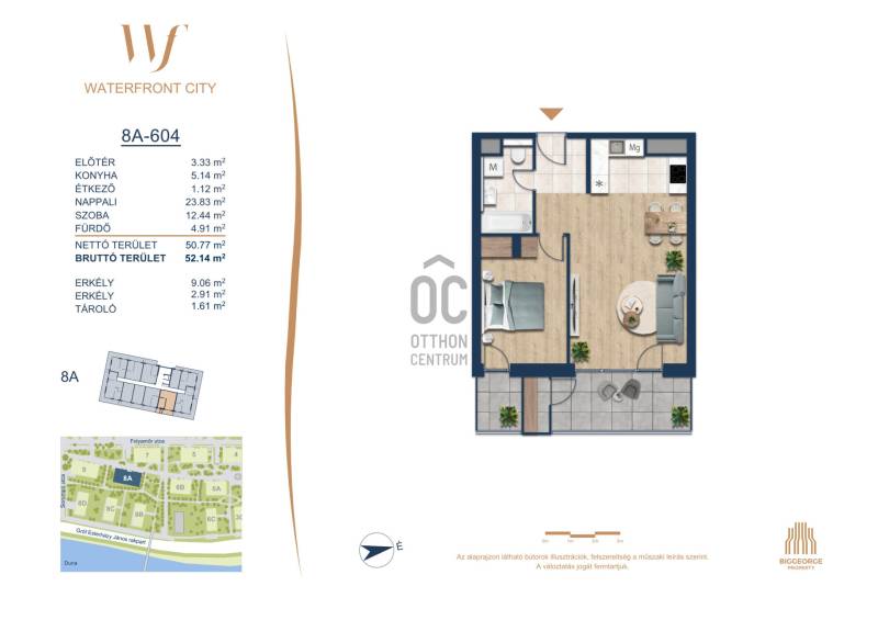 Projekt bemutatásaA projektrőlA Waterfront City egy új, modern városnegyed a 3. kerületben, ahol a természet közelsége és a városi kényelem tökéletes egyensúlyban van. A Duna-part közvetlen szomszédságában elhelyezkedő fejlesztés különleges atmoszférát kínál: a sétányt új épületek határolják, üzletekkel, kávézókkal és szolgáltatásokkal, amelyek élhető közösségi teret teremtenek.A 13 emeletes lakóépületből lenyűgöző örökpanoráma nyílik a budai hegyekre és a folyóra, a tágas teraszok pedig ideálisak a pihenéshez vagy a baráti összejövetelekhez. A zöldtetők, parkosított terek és fenntartható megoldások – mint az energiatakarékos rendszerek és okos otthon funkciók – mind hozzájárulnak a modern, környezettudatos életstílushoz.Látogass el értékesítési irodánkba, és tekintsd meg a városnegyed makettjét személyesen! Ismerd meg, milyen lesz az élet Budapest egyik legizgalmasabb új fejlesztésében!Óbuda szívébenKépzeld el, ahogy egy napsütéses délelőttön Óbuda szívében sétálsz, a Duna közelsége frissítően hat rád, miközben a Folyamőr utca, a Miklós tér és a Bogdáni út által határolt, öt hektáros területre érsz. A levegőben ott van a város történelme, mégis minden részletében a jövő hívogat.A 50 000 négyzetméteres területen egy hangulatos sétány vezet végig, amely egyenesen az óbudai Fő térre visz – mindössze 600 méterre. Ez a sétány nem csupán összeköt, hanem élményt nyújt: a Kolosy térről induló Óbudai Promenád részeként a város egyik legélhetőbb, legpezsgőbb szakaszán haladsz végig. És ha biciklivel érkeznél? A nemzetközi kerékpárút is itt halad el, Szentendre felé vezetve.Az 5. ütemben épülő 149 lakás mindegyike egyedi hangulatot kínál. Ahogy belépsz egy-egy otthonba, a hatalmas üvegfelületeken át beáradó fény és a tágas, szellős terek azonnal magukkal ragadnak. A kilátás? A Kaszap István park zöldje nyújt békét, míg a felsőbb emeletekről a Budai-hegység örökpanorámája tárul eléd – minden nap egy új festmény az ablakodban.A 6. ütemben 316 modern lakás épül, tágas teraszokkal és lenyűgöző kilátással a Dunára és a budai hegyekre. A lakók kényelmét őrszolgálat, kamerarendszer, mélygarázs, vendéglátóhelyek, belső park, játszótér és E-autó töltők szolgálják. Ez a projekt utolsó üteme, amely még közvetlen Duna-parti kapcsolattal rendelkezik.