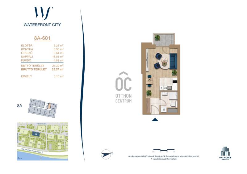 Projekt bemutatásaA projektrőlA Waterfront City egy új, modern városnegyed a 3. kerületben, ahol a természet közelsége és a városi kényelem tökéletes egyensúlyban van. A Duna-part közvetlen szomszédságában elhelyezkedő fejlesztés különleges atmoszférát kínál: a sétányt új épületek határolják, üzletekkel, kávézókkal és szolgáltatásokkal, amelyek élhető közösségi teret teremtenek.A 13 emeletes lakóépületből lenyűgöző örökpanoráma nyílik a budai hegyekre és a folyóra, a tágas teraszok pedig ideálisak a pihenéshez vagy a baráti összejövetelekhez. A zöldtetők, parkosított terek és fenntartható megoldások – mint az energiatakarékos rendszerek és okos otthon funkciók – mind hozzájárulnak a modern, környezettudatos életstílushoz.Látogass el értékesítési irodánkba, és tekintsd meg a városnegyed makettjét személyesen! Ismerd meg, milyen lesz az élet Budapest egyik legizgalmasabb új fejlesztésében!Óbuda szívébenKépzeld el, ahogy egy napsütéses délelőttön Óbuda szívében sétálsz, a Duna közelsége frissítően hat rád, miközben a Folyamőr utca, a Miklós tér és a Bogdáni út által határolt, öt hektáros területre érsz. A levegőben ott van a város történelme, mégis minden részletében a jövő hívogat.A 50 000 négyzetméteres területen egy hangulatos sétány vezet végig, amely egyenesen az óbudai Fő térre visz – mindössze 600 méterre. Ez a sétány nem csupán összeköt, hanem élményt nyújt: a Kolosy térről induló Óbudai Promenád részeként a város egyik legélhetőbb, legpezsgőbb szakaszán haladsz végig. És ha biciklivel érkeznél? A nemzetközi kerékpárút is itt halad el, Szentendre felé vezetve.Az 5. ütemben épülő 149 lakás mindegyike egyedi hangulatot kínál. Ahogy belépsz egy-egy otthonba, a hatalmas üvegfelületeken át beáradó fény és a tágas, szellős terek azonnal magukkal ragadnak. A kilátás? A Kaszap István park zöldje nyújt békét, míg a felsőbb emeletekről a Budai-hegység örökpanorámája tárul eléd – minden nap egy új festmény az ablakodban.A 6. ütemben 316 modern lakás épül, tágas teraszokkal és lenyűgöző kilátással a Dunára és a budai hegyekre. A lakók kényelmét őrszolgálat, kamerarendszer, mélygarázs, vendéglátóhelyek, belső park, játszótér és E-autó töltők szolgálják. Ez a projekt utolsó üteme, amely még közvetlen Duna-parti kapcsolattal rendelkezik.