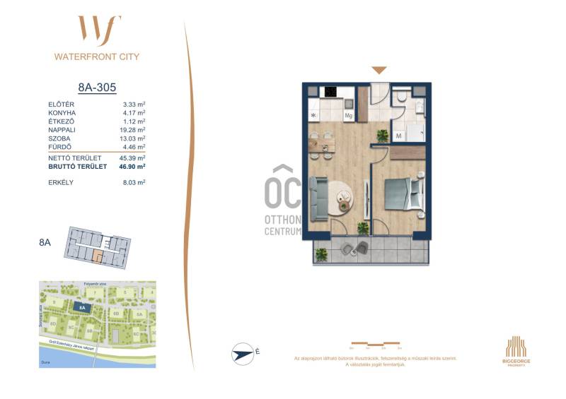 Projekt bemutatásaA projektrőlA Waterfront City egy új, modern városnegyed a 3. kerületben, ahol a természet közelsége és a városi kényelem tökéletes egyensúlyban van. A Duna-part közvetlen szomszédságában elhelyezkedő fejlesztés különleges atmoszférát kínál: a sétányt új épületek határolják, üzletekkel, kávézókkal és szolgáltatásokkal, amelyek élhető közösségi teret teremtenek.A 13 emeletes lakóépületből lenyűgöző örökpanoráma nyílik a budai hegyekre és a folyóra, a tágas teraszok pedig ideálisak a pihenéshez vagy a baráti összejövetelekhez. A zöldtetők, parkosított terek és fenntartható megoldások – mint az energiatakarékos rendszerek és okos otthon funkciók – mind hozzájárulnak a modern, környezettudatos életstílushoz.Látogass el értékesítési irodánkba, és tekintsd meg a városnegyed makettjét személyesen! Ismerd meg, milyen lesz az élet Budapest egyik legizgalmasabb új fejlesztésében!Óbuda szívébenKépzeld el, ahogy egy napsütéses délelőttön Óbuda szívében sétálsz, a Duna közelsége frissítően hat rád, miközben a Folyamőr utca, a Miklós tér és a Bogdáni út által határolt, öt hektáros területre érsz. A levegőben ott van a város történelme, mégis minden részletében a jövő hívogat.A 50 000 négyzetméteres területen egy hangulatos sétány vezet végig, amely egyenesen az óbudai Fő térre visz – mindössze 600 méterre. Ez a sétány nem csupán összeköt, hanem élményt nyújt: a Kolosy térről induló Óbudai Promenád részeként a város egyik legélhetőbb, legpezsgőbb szakaszán haladsz végig. És ha biciklivel érkeznél? A nemzetközi kerékpárút is itt halad el, Szentendre felé vezetve.Az 5. ütemben épülő 149 lakás mindegyike egyedi hangulatot kínál. Ahogy belépsz egy-egy otthonba, a hatalmas üvegfelületeken át beáradó fény és a tágas, szellős terek azonnal magukkal ragadnak. A kilátás? A Kaszap István park zöldje nyújt békét, míg a felsőbb emeletekről a Budai-hegység örökpanorámája tárul eléd – minden nap egy új festmény az ablakodban.A 6. ütemben 316 modern lakás épül, tágas teraszokkal és lenyűgöző kilátással a Dunára és a budai hegyekre. A lakók kényelmét őrszolgálat, kamerarendszer, mélygarázs, vendéglátóhelyek, belső park, játszótér és E-autó töltők szolgálják. Ez a projekt utolsó üteme, amely még közvetlen Duna-parti kapcsolattal rendelkezik.