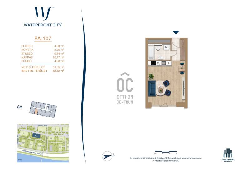 Projekt bemutatásaA projektrőlA Waterfront City egy új, modern városnegyed a 3. kerületben, ahol a természet közelsége és a városi kényelem tökéletes egyensúlyban van. A Duna-part közvetlen szomszédságában elhelyezkedő fejlesztés különleges atmoszférát kínál: a sétányt új épületek határolják, üzletekkel, kávézókkal és szolgáltatásokkal, amelyek élhető közösségi teret teremtenek.A 13 emeletes lakóépületből lenyűgöző örökpanoráma nyílik a budai hegyekre és a folyóra, a tágas teraszok pedig ideálisak a pihenéshez vagy a baráti összejövetelekhez. A zöldtetők, parkosított terek és fenntartható megoldások – mint az energiatakarékos rendszerek és okos otthon funkciók – mind hozzájárulnak a modern, környezettudatos életstílushoz.Látogass el értékesítési irodánkba, és tekintsd meg a városnegyed makettjét személyesen! Ismerd meg, milyen lesz az élet Budapest egyik legizgalmasabb új fejlesztésében!Óbuda szívébenKépzeld el, ahogy egy napsütéses délelőttön Óbuda szívében sétálsz, a Duna közelsége frissítően hat rád, miközben a Folyamőr utca, a Miklós tér és a Bogdáni út által határolt, öt hektáros területre érsz. A levegőben ott van a város történelme, mégis minden részletében a jövő hívogat.A 50 000 négyzetméteres területen egy hangulatos sétány vezet végig, amely egyenesen az óbudai Fő térre visz – mindössze 600 méterre. Ez a sétány nem csupán összeköt, hanem élményt nyújt: a Kolosy térről induló Óbudai Promenád részeként a város egyik legélhetőbb, legpezsgőbb szakaszán haladsz végig. És ha biciklivel érkeznél? A nemzetközi kerékpárút is itt halad el, Szentendre felé vezetve.Az 5. ütemben épülő 149 lakás mindegyike egyedi hangulatot kínál. Ahogy belépsz egy-egy otthonba, a hatalmas üvegfelületeken át beáradó fény és a tágas, szellős terek azonnal magukkal ragadnak. A kilátás? A Kaszap István park zöldje nyújt békét, míg a felsőbb emeletekről a Budai-hegység örökpanorámája tárul eléd – minden nap egy új festmény az ablakodban.A 6. ütemben 316 modern lakás épül, tágas teraszokkal és lenyűgöző kilátással a Dunára és a budai hegyekre. A lakók kényelmét őrszolgálat, kamerarendszer, mélygarázs, vendéglátóhelyek, belső park, játszótér és E-autó töltők szolgálják. Ez a projekt utolsó üteme, amely még közvetlen Duna-parti kapcsolattal rendelkezik.