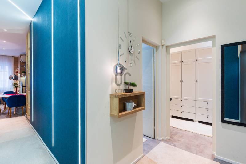 Képzeld el, hogy egy modern, belvárosi lakásban élsz, ahol a város pezsgése és a nyugalom tökéletes harmóniában találkozik. Az Újlipótváros szívében, a Pannónia utcában kínálunk eladásra egy 71 nm-es, kiváló állapotú, használt lakást, amely tökéletes választás fiatal felnőtteknek, akik városi életstílusra vágynak. Ez a tágas, három szobás ingatlan nemcsak kényelmet, hanem eleganciát is sugároz, köszönhetően a prémium kivitelezésnek és a minimalista kialakításnak. Az amerikai konyhás nappali ideális helyszín a baráti összejövetelekhez, ahol a LED hangulatvilágítás még inkább fokozza a hangulatot. A beépített bútorok és szekrények maximálisan kihasználják a teret, így a lakás minden szeglete praktikus és stílusos. A fürdőszoba modern és jól felszerelt, a lakás pedig tehermentes, így azonnal birtokba veheted. Az ingatlan központi elhelyezkedése miatt a közlekedés kitűnő. A közelben található közlekedési csomópontoknak köszönhetően könnyedén elérheted a város bármely pontját, legyen szó munkáról vagy szórakozásról. A környék ellátottsága is kiváló; számos bolt, étterem és kávézó várja azokat, akik szeretik a városi életet. A biztonságra is nagy hangsúlyt fektettek, hiszen a lakás biztonsági ajtóval és riasztórendszerrel van felszerelve, így nyugodtan élvezheted az otthonod adta kényelmet. Az Újlipótváros felkapott környék, ahol a modern életvitel és a kulturális programok sokasága vár rád. A környék csendes, ugyanakkor pezsgő, így minden adott ahhoz, hogy valóban otthon érezd magad. Ha egy exkluzív, tágas lakásra vágysz, ahol a városi élet minden előnyét élvezheted, ne habozz! Kérdéseiddel bátran kereshetsz, és szívesen segítek abban, hogy megtaláld a számodra ideális otthont.Elég egy bőrönd a költözéshez, a bútorokat és egy közel 10 m2-es gardróbszobát mi adjuk. A teljes bútorzat nincs benne a vételárban.