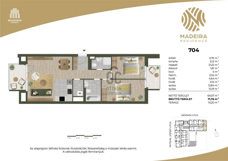 Projekt bemutatásaA projektrőlKépzeld el, ahogy belépsz Újbuda egyik legbékésebb, zöldövezeti utcájába, ahol a nyugalom átveszi a helyét a város zajos ritmusától. A Mérnök utcában, a Fehérvári út és az Etele út találkozásának közelében, egy elegánsan modern épület rajzolódik ki előtted – ez a Madeira Residence.Ahogy közelebb lépsz, a homlokzat letisztultsága, a loggiák ritmikus váltakozása azonnal megragadja a tekinteted. A pálcás korlátok finom eleganciát sugároznak, a napfény pedig játékosan tükröződik a teraszok üvegfelületein. Már kívülről is érezni: ez nem csupán egy lakóépület, hanem egy életérzés.Az első emeleti lakások egy része saját tetőkerttel rendelkezik – képzeld el, ahogy reggel a kávédat kortyolgatod a saját kis zöld oázisodban, miközben a madarak csicsergése tölti be a teret. Minden lakásban ott a tágas nappali, a kényelmes hálószobák, és a saját erkély vagy terasz, ahol a nap bármely szakában megpihenhetsz.A Madeira Residence nem csupán egy új építésű társasház – ez egy hely, ahol a modern életstílus találkozik a természet közelségével és a családbarát környezettel. Egy otthon, ahol minden nap élmény.A belső térben a kényelem és a fenntarthatóság kéz a kézben jár. A mennyezeti hűtés-fűtés rendszer csendesen gondoskodik a kellemes hőmérsékletről, az okosotthon-előkészítés pedig lehetővé teszi, hogy a technológia valóban a kényelmedet szolgálja. A mélygarázsban kényelmes parkolás vár, a kerékpártárolók és az elektromos autótöltési lehetőség pedig a környezettudatos életmódot támogatják.A környék infrastruktúrája kiváló: a közelben kiépített kerékpárutak, car sharing szolgáltatások és elektromos rollerek teszik egyszerűvé és fenntarthatóvá a közlekedést. A családosok számára külön öröm, hogy több játszótér is található a közelben – a gyerekek biztonságban, szabadon játszhatnak, miközben a szülők nyugodtan élvezhetik a környék nyugalmát.A Madeira Residence nem csupán egy új lakóépület – ez egy életérzés, ahol a mindennapok élménnyé válnak.