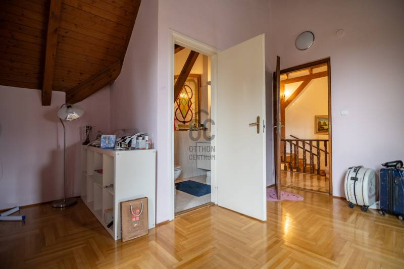 Eladó családi ház ritka dupla telken (1427 m²) Máriaremetén, a II. kerület egyik legjobb részén. A ház kiváló szerkezeti állapotban van, 1990 körül épült tömör téglából, vastag falakkal. 2016-ban teljeskörű felújításon esett át: új szigetelés, 3 rétegű műanyag nyílászárók, belső felújítások, pince is megújult.Modern fűtési rendszerek: hőszivattyú, 12 kW-os napelemrendszer (30 db panel, 2022), valamint villanybojler biztosítja az energiatakarékos működést.A ház 7 szobás, 5 WC-vel, 4 zuhanyzóval, 2 nappalival és felszerelt konyhával, így ideális nagycsaládosoknak vagy befektetőknek. A környék kiváló infrastruktúrával rendelkezik: iskola, orvos, bolt, játszótér, uszoda a közelben.