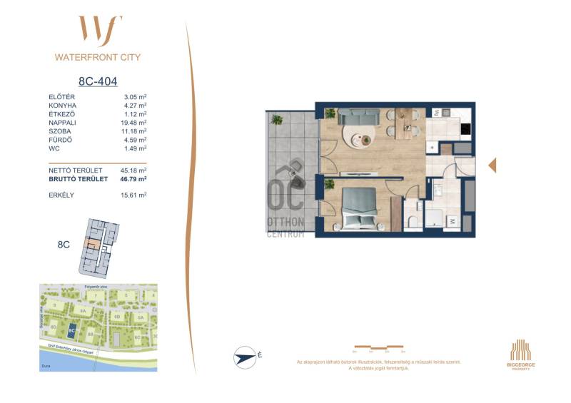 Projekt bemutatásaA projektrőlA Waterfront City egy új, modern városnegyed a 3. kerületben, ahol a természet közelsége és a városi kényelem tökéletes egyensúlyban van. A Duna-part közvetlen szomszédságában elhelyezkedő fejlesztés különleges atmoszférát kínál: a sétányt új épületek határolják, üzletekkel, kávézókkal és szolgáltatásokkal, amelyek élhető közösségi teret teremtenek.A 13 emeletes lakóépületből lenyűgöző örökpanoráma nyílik a budai hegyekre és a folyóra, a tágas teraszok pedig ideálisak a pihenéshez vagy a baráti összejövetelekhez. A zöldtetők, parkosított terek és fenntartható megoldások – mint az energiatakarékos rendszerek és okos otthon funkciók – mind hozzájárulnak a modern, környezettudatos életstílushoz.Látogass el értékesítési irodánkba, és tekintsd meg a városnegyed makettjét személyesen! Ismerd meg, milyen lesz az élet Budapest egyik legizgalmasabb új fejlesztésében!Óbuda szívébenKépzeld el, ahogy egy napsütéses délelőttön Óbuda szívében sétálsz, a Duna közelsége frissítően hat rád, miközben a Folyamőr utca, a Miklós tér és a Bogdáni út által határolt, öt hektáros területre érsz. A levegőben ott van a város történelme, mégis minden részletében a jövő hívogat.A 50 000 négyzetméteres területen egy hangulatos sétány vezet végig, amely egyenesen az óbudai Fő térre visz – mindössze 600 méterre. Ez a sétány nem csupán összeköt, hanem élményt nyújt: a Kolosy térről induló Óbudai Promenád részeként a város egyik legélhetőbb, legpezsgőbb szakaszán haladsz végig. És ha biciklivel érkeznél? A nemzetközi kerékpárút is itt halad el, Szentendre felé vezetve.Az 5. ütemben épülő 149 lakás mindegyike egyedi hangulatot kínál. Ahogy belépsz egy-egy otthonba, a hatalmas üvegfelületeken át beáradó fény és a tágas, szellős terek azonnal magukkal ragadnak. A kilátás? A Kaszap István park zöldje nyújt békét, míg a felsőbb emeletekről a Budai-hegység örökpanorámája tárul eléd – minden nap egy új festmény az ablakodban.A 6. ütemben 316 modern lakás épül, tágas teraszokkal és lenyűgöző kilátással a Dunára és a budai hegyekre. A lakók kényelmét őrszolgálat, kamerarendszer, mélygarázs, vendéglátóhelyek, belső park, játszótér és E-autó töltők szolgálják. Ez a projekt utolsó üteme, amely még közvetlen Duna-parti kapcsolattal rendelkezik.