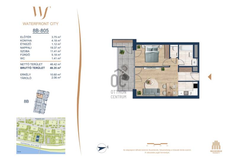 Projekt bemutatásaA projektrőlA Waterfront City egy új, modern városnegyed a 3. kerületben, ahol a természet közelsége és a városi kényelem tökéletes egyensúlyban van. A Duna-part közvetlen szomszédságában elhelyezkedő fejlesztés különleges atmoszférát kínál: a sétányt új épületek határolják, üzletekkel, kávézókkal és szolgáltatásokkal, amelyek élhető közösségi teret teremtenek.A 13 emeletes lakóépületből lenyűgöző örökpanoráma nyílik a budai hegyekre és a folyóra, a tágas teraszok pedig ideálisak a pihenéshez vagy a baráti összejövetelekhez. A zöldtetők, parkosított terek és fenntartható megoldások – mint az energiatakarékos rendszerek és okos otthon funkciók – mind hozzájárulnak a modern, környezettudatos életstílushoz.Látogass el értékesítési irodánkba, és tekintsd meg a városnegyed makettjét személyesen! Ismerd meg, milyen lesz az élet Budapest egyik legizgalmasabb új fejlesztésében!Óbuda szívébenKépzeld el, ahogy egy napsütéses délelőttön Óbuda szívében sétálsz, a Duna közelsége frissítően hat rád, miközben a Folyamőr utca, a Miklós tér és a Bogdáni út által határolt, öt hektáros területre érsz. A levegőben ott van a város történelme, mégis minden részletében a jövő hívogat.A 50 000 négyzetméteres területen egy hangulatos sétány vezet végig, amely egyenesen az óbudai Fő térre visz – mindössze 600 méterre. Ez a sétány nem csupán összeköt, hanem élményt nyújt: a Kolosy térről induló Óbudai Promenád részeként a város egyik legélhetőbb, legpezsgőbb szakaszán haladsz végig. És ha biciklivel érkeznél? A nemzetközi kerékpárút is itt halad el, Szentendre felé vezetve.Az 5. ütemben épülő 149 lakás mindegyike egyedi hangulatot kínál. Ahogy belépsz egy-egy otthonba, a hatalmas üvegfelületeken át beáradó fény és a tágas, szellős terek azonnal magukkal ragadnak. A kilátás? A Kaszap István park zöldje nyújt békét, míg a felsőbb emeletekről a Budai-hegység örökpanorámája tárul eléd – minden nap egy új festmény az ablakodban.A 6. ütemben 316 modern lakás épül, tágas teraszokkal és lenyűgöző kilátással a Dunára és a budai hegyekre. A lakók kényelmét őrszolgálat, kamerarendszer, mélygarázs, vendéglátóhelyek, belső park, játszótér és E-autó töltők szolgálják. Ez a projekt utolsó üteme, amely még közvetlen Duna-parti kapcsolattal rendelkezik.