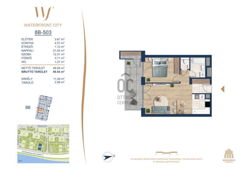 Projekt bemutatásaA projektrőlA Waterfront City egy új, modern városnegyed a 3. kerületben, ahol a természet közelsége és a városi kényelem tökéletes egyensúlyban van. A Duna-part közvetlen szomszédságában elhelyezkedő fejlesztés különleges atmoszférát kínál: a sétányt új épületek határolják, üzletekkel, kávézókkal és szolgáltatásokkal, amelyek élhető közösségi teret teremtenek.A 13 emeletes lakóépületből lenyűgöző örökpanoráma nyílik a budai hegyekre és a folyóra, a tágas teraszok pedig ideálisak a pihenéshez vagy a baráti összejövetelekhez. A zöldtetők, parkosított terek és fenntartható megoldások – mint az energiatakarékos rendszerek és okos otthon funkciók – mind hozzájárulnak a modern, környezettudatos életstílushoz.Látogass el értékesítési irodánkba, és tekintsd meg a városnegyed makettjét személyesen! Ismerd meg, milyen lesz az élet Budapest egyik legizgalmasabb új fejlesztésében!Óbuda szívébenKépzeld el, ahogy egy napsütéses délelőttön Óbuda szívében sétálsz, a Duna közelsége frissítően hat rád, miközben a Folyamőr utca, a Miklós tér és a Bogdáni út által határolt, öt hektáros területre érsz. A levegőben ott van a város történelme, mégis minden részletében a jövő hívogat.A 50 000 négyzetméteres területen egy hangulatos sétány vezet végig, amely egyenesen az óbudai Fő térre visz – mindössze 600 méterre. Ez a sétány nem csupán összeköt, hanem élményt nyújt: a Kolosy térről induló Óbudai Promenád részeként a város egyik legélhetőbb, legpezsgőbb szakaszán haladsz végig. És ha biciklivel érkeznél? A nemzetközi kerékpárút is itt halad el, Szentendre felé vezetve.Az 5. ütemben épülő 149 lakás mindegyike egyedi hangulatot kínál. Ahogy belépsz egy-egy otthonba, a hatalmas üvegfelületeken át beáradó fény és a tágas, szellős terek azonnal magukkal ragadnak. A kilátás? A Kaszap István park zöldje nyújt békét, míg a felsőbb emeletekről a Budai-hegység örökpanorámája tárul eléd – minden nap egy új festmény az ablakodban.A 6. ütemben 316 modern lakás épül, tágas teraszokkal és lenyűgöző kilátással a Dunára és a budai hegyekre. A lakók kényelmét őrszolgálat, kamerarendszer, mélygarázs, vendéglátóhelyek, belső park, játszótér és E-autó töltők szolgálják. Ez a projekt utolsó üteme, amely még közvetlen Duna-parti kapcsolattal rendelkezik.