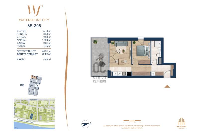 Projekt bemutatásaA projektrőlA Waterfront City egy új, modern városnegyed a 3. kerületben, ahol a természet közelsége és a városi kényelem tökéletes egyensúlyban van. A Duna-part közvetlen szomszédságában elhelyezkedő fejlesztés különleges atmoszférát kínál: a sétányt új épületek határolják, üzletekkel, kávézókkal és szolgáltatásokkal, amelyek élhető közösségi teret teremtenek.A 13 emeletes lakóépületből lenyűgöző örökpanoráma nyílik a budai hegyekre és a folyóra, a tágas teraszok pedig ideálisak a pihenéshez vagy a baráti összejövetelekhez. A zöldtetők, parkosított terek és fenntartható megoldások – mint az energiatakarékos rendszerek és okos otthon funkciók – mind hozzájárulnak a modern, környezettudatos életstílushoz.Látogass el értékesítési irodánkba, és tekintsd meg a városnegyed makettjét személyesen! Ismerd meg, milyen lesz az élet Budapest egyik legizgalmasabb új fejlesztésében!Óbuda szívébenKépzeld el, ahogy egy napsütéses délelőttön Óbuda szívében sétálsz, a Duna közelsége frissítően hat rád, miközben a Folyamőr utca, a Miklós tér és a Bogdáni út által határolt, öt hektáros területre érsz. A levegőben ott van a város történelme, mégis minden részletében a jövő hívogat.A 50 000 négyzetméteres területen egy hangulatos sétány vezet végig, amely egyenesen az óbudai Fő térre visz – mindössze 600 méterre. Ez a sétány nem csupán összeköt, hanem élményt nyújt: a Kolosy térről induló Óbudai Promenád részeként a város egyik legélhetőbb, legpezsgőbb szakaszán haladsz végig. És ha biciklivel érkeznél? A nemzetközi kerékpárút is itt halad el, Szentendre felé vezetve.Az 5. ütemben épülő 149 lakás mindegyike egyedi hangulatot kínál. Ahogy belépsz egy-egy otthonba, a hatalmas üvegfelületeken át beáradó fény és a tágas, szellős terek azonnal magukkal ragadnak. A kilátás? A Kaszap István park zöldje nyújt békét, míg a felsőbb emeletekről a Budai-hegység örökpanorámája tárul eléd – minden nap egy új festmény az ablakodban.A 6. ütemben 316 modern lakás épül, tágas teraszokkal és lenyűgöző kilátással a Dunára és a budai hegyekre. A lakók kényelmét őrszolgálat, kamerarendszer, mélygarázs, vendéglátóhelyek, belső park, játszótér és E-autó töltők szolgálják. Ez a projekt utolsó üteme, amely még közvetlen Duna-parti kapcsolattal rendelkezik.
