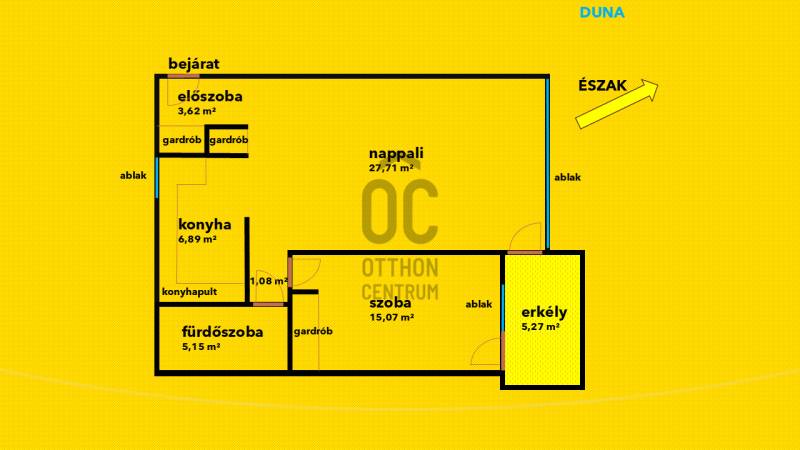 Megvételre kínálok a XIII.kerületben a közkedvelt Riverside lakóparkban egy 7. emeleti részben dunai panorámás 59 m2-es 2 szobás lakást melyhez tartozik egy 6 m2-es erkély is!Az ingatlan főbb jellemzői: - 59 m2, 2 szoba, 6m2-es erkély - Részleges dunai panoráma az erkélyről és a nappaliból - Amerikai konyhás, tágas és világos nappali, ablakos konyharésszel - Külön nyíló, csendes hálószoba - Nagyméretű erkély, amely mindkét szobából elérhető - Modern nyílászárók, kiváló hő- és hangszigetelés - Minőségi burkolatok, igényes kivitelezés- Fürdőszoba kényelmes fürdőkáddal- Előszoba + beépített szekrények mindkét szobában- Praktikus, jól alakítható alaprajzRiverside Apartmanház – exkluzív lakópark szolgáltatásai: - Beltéri úszómedence - Felszerelt fitness terem - Wellness részleg: - szauna - jakuzzi - gőzkabin - 24 órás portaszolgálat - Kamerarendszer és beléptető kártyás rendszer - Gondozott parkosított kert - Sétányok, zöld pihenőterek, játszótér - Lakók számára kizárólagos elérhetőség - A szolgáltatások használata a közös költség része- Mélygarázsban opcionálisan vásárolható parkoló: 10 000 000 Ft-értElhelyezkedés és közlekedés - Autóval gyors kijutás a rakpartra és fő közlekedési útvonalakra - Busz- és trolimegálló közvetlen az épület mellett - M3 metró (Dózsa György út) könnyen elérhető - Árpád híd csomópont néhány perc sétáraKörnyék infrastruktúrája: - Bevásárlási lehetőségek, pékség, gyógyszertár - Bank, posta, egészségügyi szolgáltatások - Oktatási intézmények a közelben - Éttermek, kávézók, szolgáltatók - Duna-part mindössze 1 perc gyalog - Sétány a Parlament és Margitsziget irányába - Futó- és kerékpárút - Parkok, sportolási lehetőségekMiért ez a lakás? - Exkluzív lakópark, kiemelkedő életszínvonal - Panorámás, csendes 7. emeleti elhelyezkedés - Funkcionális, élhető alaprajz - Magas bérbeadhatóság - Biztonságos, értékálló befektetés - Ritka lehetőség prémium környezetbenEgyedi igényekre szabott lakáshitelekkel állunk rendelkezésére.Bankfüggetlen Hitelcentrumunk az országban elérhető összes bank és hitelintézet ajánlatát versenyezteti az Ön számára díjmentesen.Munkatársaink nagy szakmai tapasztalattal, teljes körű CSOK PLUSZ és OTTHON START PROGRAM ügyintézéssel várják Önt előre egyeztetett időpontban akár a normál munkaidő után is.