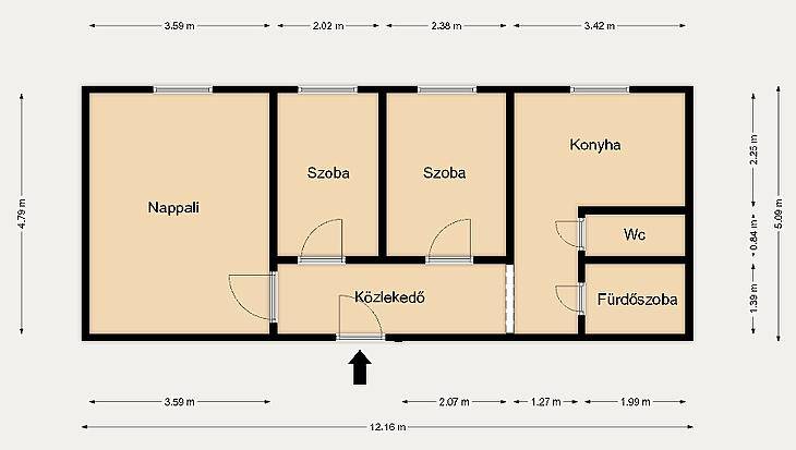 Budapest XIX. kerületében, kiváló tömegközlekedéssel és ellátottsággal rendelkező részen eladó egy jó állapotú, 59 m²-es, 1+2 fél szobás, első emeleti lakás.Az ingatlan praktikus elosztású, szobái külön nyílnak, a konyha pedig kifejezetten nagy és tágas, így étkezőként is jól használható, családok számára is kényelmes megoldást kínál. A nyílászárók műanyagok, a burkolatok jó állapotúak, a szobákban parketta található. A délkeleti fekvésnek köszönhetően a lakás világos, napfényes.A komfortot három darab klíma biztosítja, a fűtés távhőről működik, fix 12.000 Ft havi díjjal. A közös költség 28.000 Ft/hó, amely tartalmazza a vízdíjat és a felújítási alapot is. A lakáshoz tartozik továbbá egy 5 m²-es saját pince, amely kiváló tárolási lehetőséget kínál.Az ingatlan 1/1 tulajdonban van, per- és tehermentes.A környék infrastrukturális szempontból rendkívül előnyös: a közelben található a Kossuth téri piac, Aldi, Lidl, több óvoda, iskola, gyógyszertár és orvosi rendelő. A közlekedés kiváló: 42-es és 50-es villamos, valamint az M3-as metró is gyorsan elérhető – a belváros körülbelül 30 perc alatt megközelíthető.Vevőnk számára a közvetítés díjtalan!Ingatlanját díjmentesen érték becsüljük!