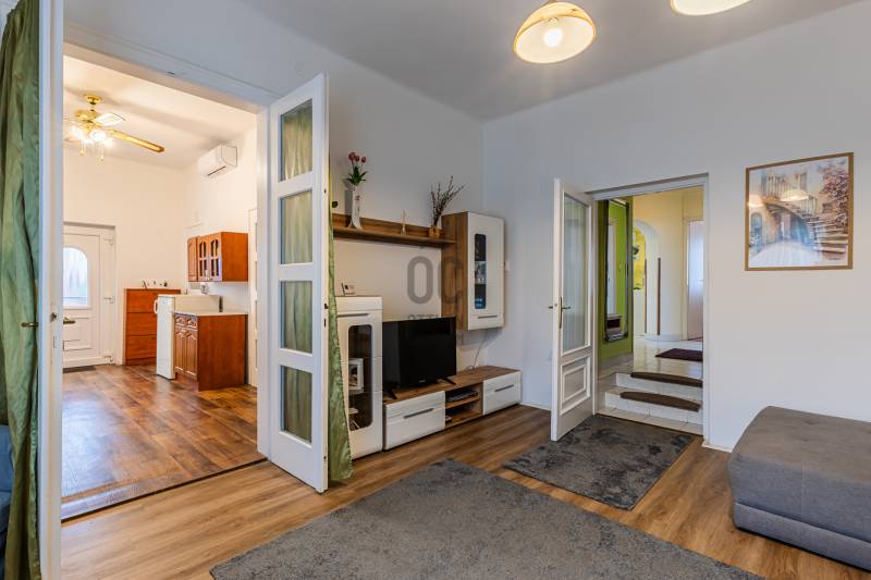 Eladó Dunakeszi egyik legkeresettebb, kiemelten jó hírű városrészén, ALAGON, egy páratlan lehetőségeket kínáló, 2 GENERÁCIÓS – 2 INGATLAN – 2 HELYRAJZI SZÁMON nyilvántartott családi ház!ÖSSZENYITVA egy tágas, 6 szobás otthonként, LEVÁLASZTVA pedig két teljesen önálló lakrészként használható!Mindez egy ritka méretű, 775 m²-es, gondosan karbantartott telken, klasszikus kertes házakkal szegélyezett, kifejezetten jól szituált utcában — Dunakeszi ikónikus ALAG városrészén.INGATLAN 1 – A bájos „mézeskalács házikó” (modernizált, hangulatos lakrész)Az 1960-as években épült, tégla falazatú otthon 10 éve teljes körű korszerűsítésen esett át:Új tetőszerkezet és modern cserép héjazatMűanyag thermo ablakokDryvit homlokzati szigetelésIgényes laminált padlók az előszobában és a szobákbanKlímák a komfortos nyári hőmérsékletértElrendezés:Tágas, több mint 20 m²-es nappaliKényelmes, 13 m²-es hálószobaNagy előszoba étkezővelFőzőfülkeFelújítást igénylő fürdőszobaINGATLAN 2 – Az 1995-ben épült, belső kétszintes, 110 m²-es családi házTágas, praktikus, nagycsaládosoknak is tökéletes elosztással:Földszinten 1 hálószobaEmeleten további 3 külön nyíló szoba2 fürdőszoba – kényelmes, gyors reggeli készülődésMinden szobában és a konyhában klímaRitka méretű, 16 m²-es konyha-étkező, ami ideális közös családi étkezésekhez, társasági eseményekhezKülönleges telekadottság – KÉT TELJESEN KÜLÖN BEJÁRAT KIALAKÍTHATÓ!A 775 m²-es telek és a két külön helyrajzi szám lehetővé teszi, hogy a két épület:akár teljesen különválasztva, átjárás nélkül működjön,akár egybenyitva egy óriási, többgenerációs családi otthonként szolgáljon.IDEÁLIS VÁLASZTÁS:✔ nagycsaládosok számára✔ két generáció kényelmes együttéléséhez✔ Passzív jövedelemre törekvőknek, akik saját lakóingatlan mellett állandó, stabil bevételt szeretnének generálni ingatlan bérbeadásából✔ összeköltözőknek, akik mégis önálló életteret igényelnekHa egy olyan ingatlant keres Dunakeszi legjobb környékén, amely ennyire rugalmasan alakítható az Ön élethelyzetéhez, akkor ezt feltétlenül látnia kell!Részletes információért vagy megtekintés egyeztetéséhez hívjon bizalommal!