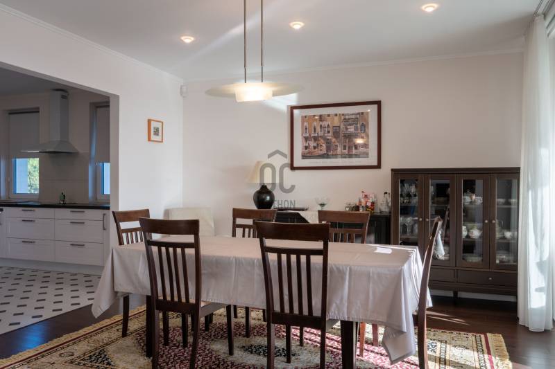A Budai-hegység ölelésében, Nagykovácsi egyik legexkluzívabb, természetközeli részén, a Kültelek utcában kínálunk megvételre egy ritkaságszámba menő, 2018-ban épült, háromszintes, 8 szobás, panorámás családi rezidenciát. Az ingatlan egy intim, 1007 m²-es délnyugati fekvésű telken helyezkedik el, ahonnan lélegzetelállító kilátás nyílik a városi sziluettre és a környező zöld dombokra. A ház két utcáról is megközelíthető – az egyik oldalon aszfaltozott út, a másikon csupán 50 méteres, gondozott murvás szakasz vezet fel.A rezidencia tégla falazattal, gondosan megválogatott, időtálló építőanyagokkal és modern műszaki tartalommal készült. A padló- és radiátoros fűtésrendszerrel kombinált gázcirkó, valamint nagycsaládos igényeket is kiszolgáló vízmelegítővel. Az ingatlan kifogástalan állapotú, esztétikailag és műszakilag egyaránt prémium színvonalat képvisel.Letisztult elegancia három szinten – gondosan megtervezett élettérAlagsor – wellness és privát rekreációraA ház alsó szintje a kikapcsolódásnak és a praktikumoknak szentelt:- Prémium szauna külön zuhanyzóval- Pihenésre alkalmas lakótér (25 m²), akár vendégszobaként, akár edzőhelyként- Tágas raktár (20 m²), igényes gépészeti helyiség- Közvetlen kapcsolat a 27 m²-es terasszal, ahonnan a kert nyugalma tárul fel.- Ez a szint tökéletesen működik privát wellnessrészlegként vagy önálló vendéglakrészként.Földszint – a rezidencia reprezentatív központja.A földszinten a nagyvonalú terek, a fény és a panoráma dominálnak:- Fényárban úszó nappali közvetlen teraszkijárattal- Tágas étkező és modern, praktikusan kialakított konyha kamrával- Különálló vendégszoba és vendégmosdó- Privát hálószoba saját gardróbbal és fürdőszobával- Külön dolgozószoba, amely otthoni irodának vagy könyvtárnak is ideális- A ház egyik legszebb eleme a 38 m²-es panorámás terasz, amely a nappali és az étkező együttes meghosszabbítása – tökéletes helyszín reggeli kávéhoz vagy esti borozáshoz- A földszint eleganciája és funkcionalitása egyaránt a modern családi életet szolgálja.Emelet – privát lakosztály a nyugalom jegyébenA felső szint a ház privát, pihenésre kialakított szférája:- Két impozáns méretű hálószoba- Stílusos, külön fürdőszoba- 12 m²-es erkély, amely a hálókból közvetlenül elérhető és páratlan panorámát biztosít- Ez a szint külön lakrésznek is tökéletes, ideális szülői lakosztálynak vagy idősebb gyermekek számára.Ahol a természet és a luxus harmonizál:1000 m²-es, intim, délnyugati fekvésű kert állandó napsütést, teljes privát szférát és kivételes panorámát kínál. A telken két nyitott gépkocsi-beálló biztosítja a kényelmes parkolást.Nagykovácsi a főváros egyik legértékesebb agglomerációs települése:- magas életminőséggel, kiváló levegővel, világszínvonalú oktatási intézményekkel (köztük az Amerikai Nemzetközi Iskolával), közvetlenül a Budai Tájvédelmi Körzet szomszédságában.- Nagykovácsi ötvözi a természet közelségét a modern, családbarát infrastruktúrával.Ez az ingatlan nem csupán egy ház – inkább egy életérzés!Foglaljon időpontot telefonon a megtekintésre – engedje, hogy ez a különleges rezidencia személyesen is elvarázsolja.Hitelezési Szakértőnk egyetlen lépésben bemutatja Önnek az összes pénzintézet ajánlatát - így elkerülheti a hosszadalmas és felesleges banki látogatásokat – gyorsan, hatékonyan és a legjobb döntést biztosítva Önnek.Ez az ingatlan a \"Felező csomag\" megbízási portfólióhoz tartozik. Részletek az Otthon Centrum weboldalán.