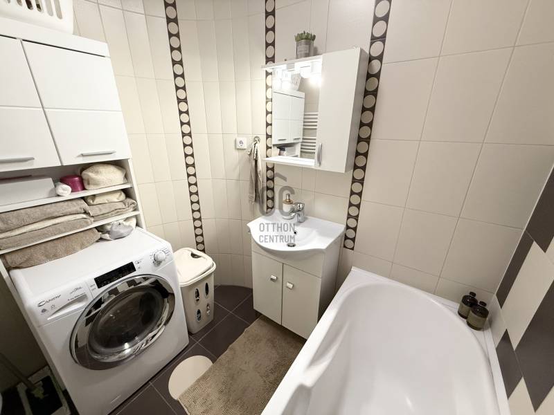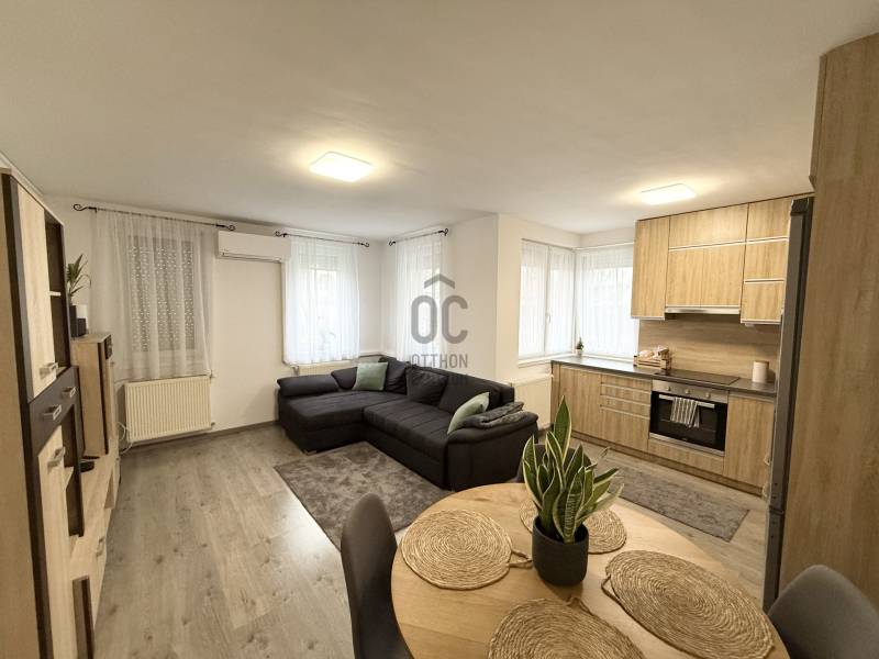 Eladó földszinti lakás Debrecenben, a Hatvan utcai kertben!Eladásra kínálunk egy kifogástalan állapotú, földszinti, 59m2-es lakást a Hatvan utcai kertben!Főbb jellemzői:- 2009-ben épült 12 lakásos társasház földszinti lakása- 59m2, elosztása kiváló: két hálószoba (9-10m2), amerikai konyhás nappali (25m2), fürdőszoba (4m2), toalett (2m2), közlekedő (9m2) helyiségekből áll- fűtése gázcirkó, radiátoros hőleadókkal- klimatizált- műanyag nyílászárók, redőnnyel, rovarhálóval ellátva- a bútorzat a vételár részét képezi, konyhája teljesen gépesített, 12 terítékes mosogatógéppel- NY-i tájolású, napfényes lakás- közös költség 15.475Ft, mely tartalmazza a kertrendezést és lépcsőház takarítását- a társasház közös, nagyméretű udvarral rendelkezik, szalonnasütővel, játszótérrel- parkolni a társasház előtt kényelmesen lehet- tehermentes- rövid időn belül birtokba vehetőTovábbi kérdés, megtekintés esetén várom hívását!