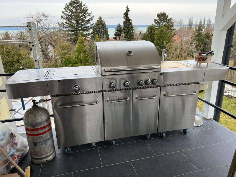 Ábrahámhegy, örök panorámás nyaralóÁbrahámhegy festői környezetben a Balaton északi partján az Örsi hegy és a Tapolcai-medence tanúhegyeinek karéjában, a Burnót patak völgyében megbúvó 550 fős település, Révfülöp és Badacsony között.A település belterületi részén örök panorámás nyaraló keresi igényes, új tulajdonosát.A háromszintes tégla építésű ház 190 nm hasznos alapterülettel rendelkezik.2023 -ban teljes körű felújításon esett át , minőségi alapanyagok, burkolatok felhasználásával.A földszint elosztása - nagyméretű , tágas amerikai konyha- nappali , 3 hálószoba, fürdőszoba , fedett ,és nyitott teraszkapcsolat .Az emeleti szint - 2 hálószoba, fürdőszoba ,amerikai konyhás nappali, 2 db panoráma erkély.A tetőtérben - amerikai konyhás nappali, hálószoba, fürdőszoba, gardrób kialakítás.Közművek bevezetve, az otthon melegét infra padlófűtés ,inverteres klíma berendezések és kiépített napelem rendszer biztosítja.Szintenként külön bejárattal rendelkező lakóterek.Az 1000 nm -es telek felújítása még folyamatban van.A kertben feszített víztükrű medence , nagyméretű napozó terasszal áll a lakók rendelkezésére.A térkővel borított bejáron 4-5 autó számára ,a parkolás a telken belül megoldott.Átjáró forgalomtól mentes ,intim környezet,ideális a nyugodt pihenésre.A telek bármely pontjáról mesés Balatoni panorámát élvezhetünk ,Tulajdonviszonyok rendezettek, rövid határidővel birtokba vehető !Ábrahámhegy Isten áldotta helyen van.A víz itt ad találkozót az erdőnek, festői részletekben gazdag, pompás tájak, szép telepítésű szőlők, hangabokrokkal galagonyásokkal borított hegyoldalak, sűrű tölgyesek, borókások, selyemfüvű tisztások váltják egymást.A természet, az ember, és a táj harmóniája, a tó ezer arca a csend és a nyugalom jellemzi. Védelmet, értelmes pihenést, nyugalmat ígér szépségével.Ha felkeltette az érdeklődését, hívjon bizalommal!