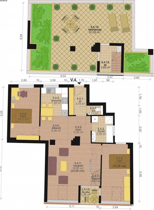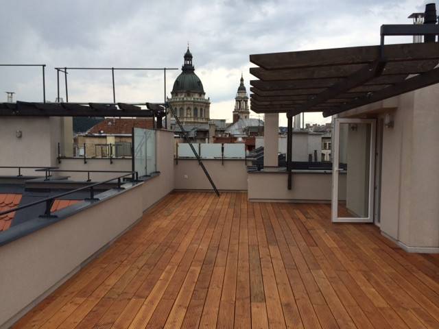 Fantasztikus lehetőség Szent István Bazilika és a Magyar Állami Operaház között az új Hilton szálló mellett. Egy felújított liftes épület tetőterében kialakított tetőteraszos lakást vásárolhat! A két hálószobás lakás nappalija erkélyes, az igazi különlegessége a lakáshoz tartozó privát 61m2-es teetőterasz melyről pazar kilátás nyílik a városra. A konyha a nappalitól elkülönülve egy ablakos helyiségben került kialakításra mely igény szerint akár teljesen lezárható , a nappalitól szeparálható, az utcai hálószoba közvetlen fürdőszoba kapcsolattal rendelkezik. Az egyedi fűtésnek köszönhetően kedvezően alakul a rezsi, az elhelyezkedésnek köszönhetően akár gyorsan és könnyedén bérbe adható. Az épület a tetőtér beépítéssel párhuzamosan teljesen megújult, A-tól Z-ig megújult és új panoráma lift került beépítésre.Amennyiben befektetési céllal vásárolná meg az ingatlant levesszük a válláról a terhet és akár teljes körű üzemeltetést is vállaljuk.
