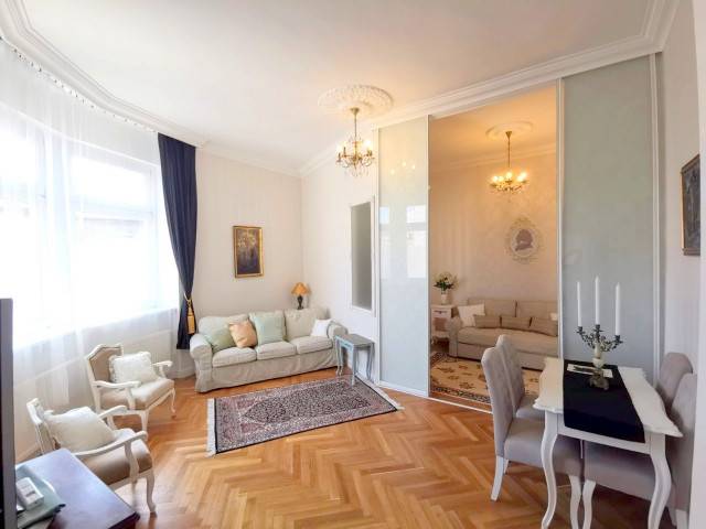 V.kerület VÁCI utcában zárt lépcsőházból nyíló 65 nm, 1 nappali + 2 hálószobás (külön nyílóak) teljes körűen, frissen felújított, luxus minőségű anyagokkal, csendes lakás, gyönyörű liftes társasház V. emeletén eladó. Egyedi fűtésű (gáz cirkó), légkondicionált. Bútorozottan, teljes felszereléssel. Belmagasság 3,4 m.Közös költség: 17.000 Ft (korlátlan hideg víz használattal)( bútor+ felszerelés kötelezően)Egyetemek 3-5 percre: ELTE Jog, Corvinus , ELTE BTK Közlekedés:Metró M3 és M4 (Ferenciek tere, Fővám tér) 2 perc