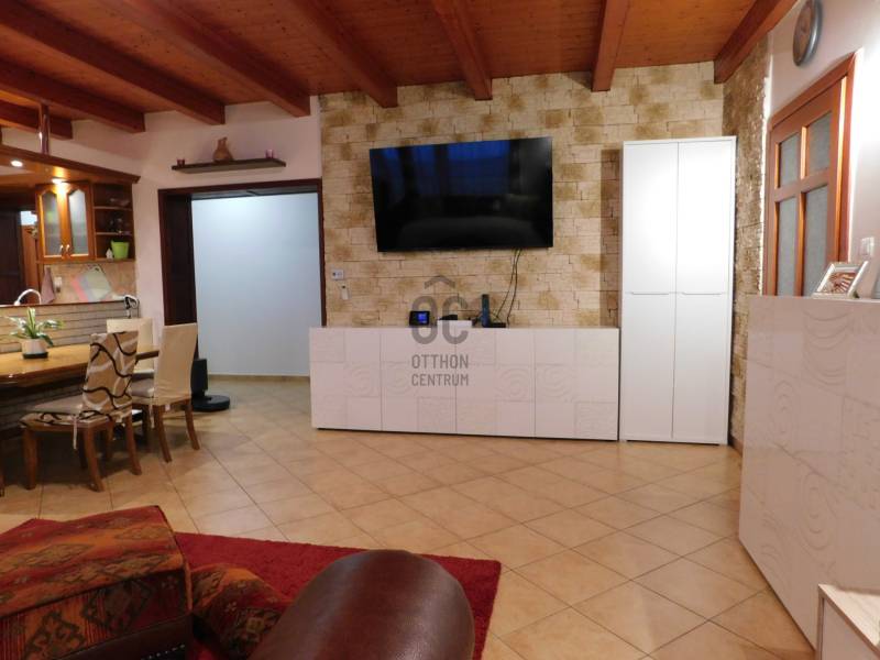 Tápiószentmártonban egy 120 nm hasznos lakóterű, 2004-ben épült családi ház várja új lakóit.Jó elosztású épület,magas műszaki tartalommal: , tágas konyha-étkező, nappali teraszra nyíló ajtóval, 3 hálószoba, kamra, mosókonyha, fürdőszoba, külön illemhelyiség,garázs, műhellyel .Az ingatlan kiváló állapotban van, tehermentes és azonnal költözhető. Buszmegálló 5 perces sétára van így a közlekedési lehetőségek kiválóak. Az ingatlan jó elhelyezkedése miatt a vásárlás, az iskola és az egészségügyi intézmények is könnyen elérhetők. A környék biztonságos, csendes, így ideális azoknak, akik szeretnének egy nyugodt és kellemes otthont kialakítani.Az amerikai konyha modern és praktikus, és az egyedi tervezésnek köszönhetően a lakás világos és barátságos. Az ingatlanban beépített bútorok és szekrények találhatók, így azonnal beköltözhető és élvezheti az otthon melegét. A kert rendezett és modern, szaletlivel a családi és baráti összejövetelekhez nagyszerű teret biztosít.Ha érdekli Önt ez az ingatlan, kérjük, vegye fel velünk a kapcsolatot. Az ingatlan bemutatása érdekében szívesen állunk rendelkezésére. Ne hagyja ki ezt a kiváló lehetőséget!Ingatlan leírása:- modern tervezés, kivitelezés, minőségi építőanyagok,- tégla építés (porotherm 38),- egyedi gyártású fa külső-belső nyílászárók,- süllyesztett spotok,- beépített konyhabútor, gardróbbútor ,- padlófűtés, vegyes és gáz kazánnal,- klíma nappaliban,- udvaron térkövezés, elektromos kapu,- kerti szaletli, mászóka csúszdával, hintával,- fúrt kút kerti szivattyúval,- 25 nm-es fűtött garázs szerelőaknával, - egyéb udvari tárolók.- 859-es porta gondozott, füvesített.Tápiószentmártonban három óvoda, két általános iskola, uszoda, sportcsarnok és művészeti iskola is várja a gyermeküket itt nevelőket és a jövőben a településre költöző családokat.A településen színvonalas étterem, híres lovarda, pozitív energiát sugárzó Attila-domb, borgazdaság, strandfürdő üzemel. A gyógyvízzé minősített termálfürdő vize alkáli hidrogén tartalma által mozgásszervi, reumatológiai és nőgyógyászati betegségek gyógyításában rendkívül hatásos.A település könnyen megközelíthető a 4-es autóút és a 311-es főút felől.Tápiószentmárton tömegközlekedésben az autóbusz forgalomra támaszkodik, így Cegléd, Jászberény, Eger, Budapest városok irányába napi rendszerességgel indulnak járatok, de a közeli Nagykáta városban elérhető a Budapest - Újszász - Szolnok vasútvonal is.Ha hitelre van szüksége, irodánkban teljes körű ügyintézéssel, ingyenes és bankfüggetlen hitelközvetítéssel várjuk.Ez az ingatlan a \"Felező csomag\" megbízási portfólióhoz tartozik. Részletek az Otthon Centrum weboldalán.