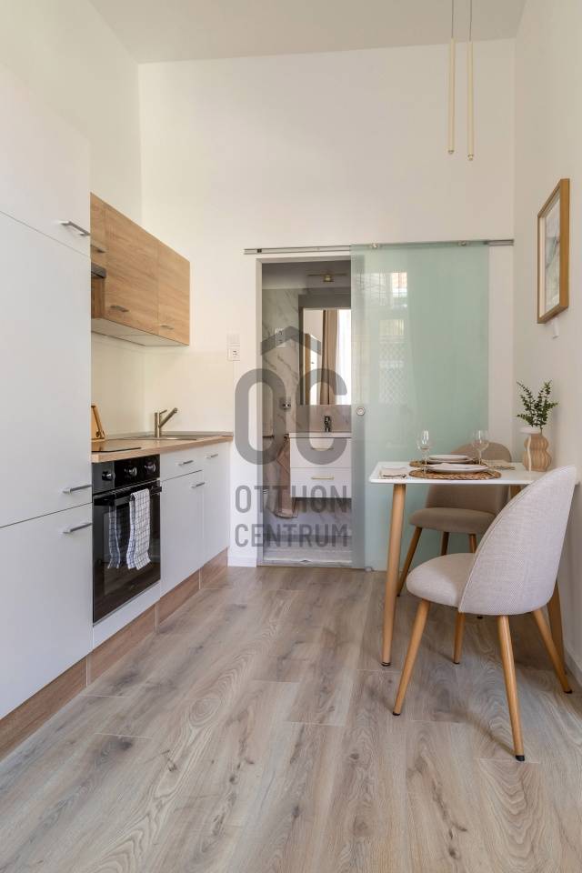 Kiadó egy 4. emeleti, 23 m2-es, teljes körű felújításon átesett nappali + 1 szobás lakás Budapest VII. kerületében, az Erzsébet körúttól egy ugrásra az Almássy térnél.A ház rendezett és tiszta, elhelyezkedése kiváló, hiszen pár perc az 1-es metró (Vörösmarty utca), a 2-es metró (Blaha Lujza tér), a 4-6-os villamos, valamint több busz és troli.Leginkább fiatal egyedülállóknak, esetleg pároknak kitűnő megoldás, a legtöbb egyetem/főiskola, színházak, egyéb szórakozási lehetőség könnyedén elérhetők.A lakás praktikus és világos, nagyon kellemes élettér, egy négyes lakóegység egyik eleme.A rendelkezésre álló tér kihasználását igényes és minőségi bútorozás segíti.A lakás rövid határidővel birtokba vehető.A szerződéskötéshez 1 havi bérleti díjjal és 2 havi kaucióval kell rendelkezni, valamint szükség lesz közjegyzői kiköltözési nyilatkozatra.A minimum bérleti idő 12 hónap, kisállatot hozni és a lakáson belül dohányozni nem lehet.További információkért keressen akár hétvégén is!Az időpont egyeztetése minimum 1-2 nappal korábban szükséges.