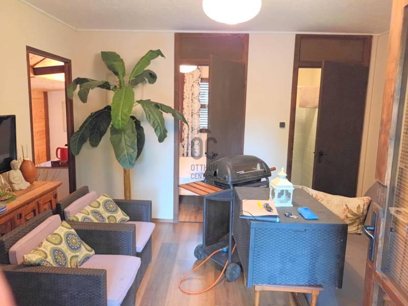 A Balatontól 5 perc sétára, Révfülöp településen kínálom megvételre ezt a két generáció együttélésére is alkalmas ingatlant. A 939 négyzetméteres telken 2 különálló épületet is találunk, egy téglaépítésű családi házat, illetve egy könnyűszerkezetes kisházat.A főépületben a földszinten 1 különnyíló szoba, nappali, fürdőszoba, külön Wc, konyha-étkező helyiségek találhatóak, a tetőtérben 2 különnyíló szoba - kialakított mosdórésszel, illetve közlekedő. A ház szépen felújított, minőségi burkolatokkal van ellátva. Fűtése gázcirkó, radiátoros hőleadással, de található benne egy hangulatos cserépkályha is. Minden helyiségben laminált padlóburkolat van.Az épülethez tartozik egy fedett, 9,14 nm-es terasz is.A kisházban 1 különnyíló szoba, nappali, fürdőszoba-Wc, konyha-étekező helyiségek vannak, illetve itt is találunk egy 15,76 négyzetméteres teraszt. A szoba és a nappali laminált burkolatot kapott, a többi helyiségben járólap van.Az ingatlan elhelyezkedése a településen belül rendkívül kedvező, minden szolgáltatás könnyen elérhető, két utcáról is van bejárata. Akár befektetési célból is tökéletes választás lehet! Révfülöp Balatonfüredtől 24, Keszthelytől 36, Siófoktól 35 km-re található.Amennyiben az ingatlan elnyerte a tetszését, hívjon bizalommal és megtekintésre időpontot egyeztetünk!Szolgáltatásaink körében szakszerű tanácsadással, bank-semleges hitel-ügyintézéssel és kedvező díjszabású ügyvéddel nyújtunk segítséget!