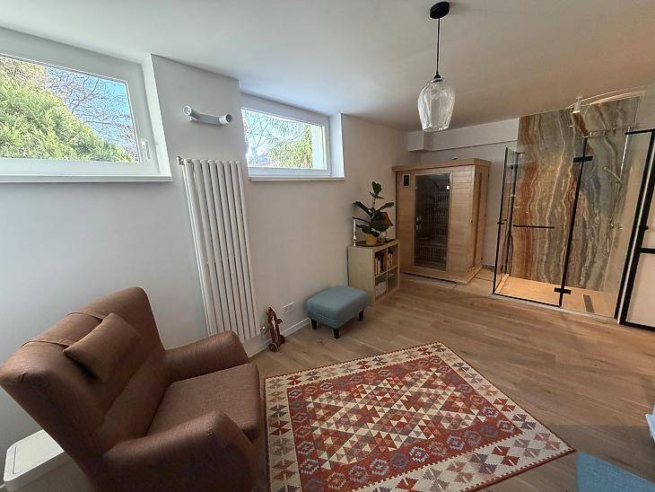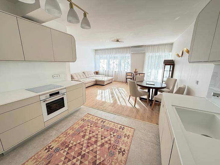 Pasaréti tértől pár percre, egyirányú kis mellékutcában, 8 lakásos házban eladó egy belső 2 szintes frissen, magas színvonalon felújított, DNY-i és DK-i fekvésű lakás. A lakás kívülről 15cm dryvit hőszigetelést kapott. A felújítás során 3 rétegű nyílászárók kerültek be, melyeket a távvezérelhető, hőszigetelt, alumínium redőnyök egészítenek ki. Tovább fokozza a minőségérzetet az alumínium keretes, üvegezett bejárati ajtó. A felső szinten egy amerikai konyhás nappali, hatalmas faltól-falig érő ablakokkal, egy hálószoba és egy fürdőszoba került kialakításra. A nappaliból nyílik a 6nm-es erkély, mely üvegkorlátot kapott. Minden bútor, beleértve a gépesített konyhabútort is, egyedi tervek alapján készültek, kifejezetten ide. Az alsó szinten egy egyedi szoba kapott helyet. Egyediségét a beépített zuhanykabin és az infraszauna adja. Ezenkívül egy külön wc, egy tároló és a garázs. A garázs parkettázott és szekcionált motoros kapuval ellátott, melynek vételára +15M Ft, kötelezően megvásárolandó. Az ingatlan fűtéséről egy Bosch kondenzációs kazán gondoskodik, a felső szinten padlófűtéssel, az alsó szinten pedig radiátoros fűtéssel. Szintén bekerült egy ultrahangos vízlágyító is. Mindkét szinten prémium minőségű burkolatok és szaniterek kerültek kiválasztásra és le-, illetve behelyezésre. Bevásárlási lehetőség, tömegközlekedés, gyógyszertár, posta pár perc sétával elérhető.
