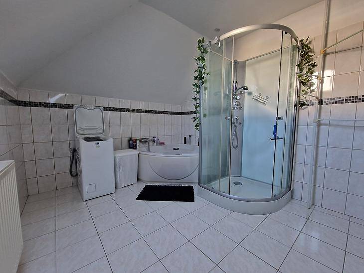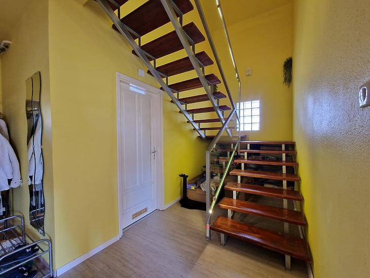 Dunakeszi Révdűlőben eladó egy jó adottságú, 2005-ben épült ikerházfél.Az ingatlan 172 nm összterületű, ebből 139 nm lakótér. A kialakítás kifejezetten jól használható: négy hálószoba, amerikai konyhás nappali, gardrób, két fürdőszoba + külön WC biztosít elegendő teret akár nagyobb családnak vagy több generációnak is.A fűtésről és meleg vízről karbantartott gázkazán gondoskodik. Az elmúlt években az ingatlan több ponton felújításon esett át:automata redőnyök, klíma, padlóburkolatok cseréje.A házhoz emeleti erkély, hátsó terasz, beépített utcafronti terasz, valamint garázs tartozik. A ház előtt viacolorral burkolt parkoló van kialakítva, amely két autó számára kényelmes megoldást nyújt.A 200 nm-es kert jól tagolt, élhető méretű, nem fenntartásigényes, mégis elég nagy gyerekeknek, grillezéshez vagy kertészkedéshez. A kert öntözéséről fúrt kút gondoskodik.Csendes, családi házas környezet, jó megközelíthetőség:buszmegálló ~8 perc, Duna-part ~5 perc, az ingatlan nem árterületen fekszik.