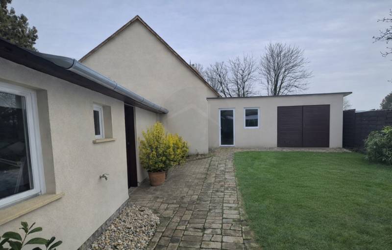 Baján kínálunk megvételre egy újszerű állapotú családi házat!Az ingatlan 65 m² alapterületű, 400 m²-es telken helyezkedik el. Falazata vegyes, homlokzata kőzetgyapottal hőszigetelt, amely kiváló energiahatékonyságot és kellemes lakókörnyezetet biztosít. Tájolása északkeleti.A ház elosztása praktikus: nappali + szoba + 2 félszoba, a szobák laminált padlóburkolattal rendelkeznek. A 3 rétegű, műanyag nyílászárók kiváló hő- és hangszigetelést nyújtanak.A fűtésről kondenzációs kazán, míg a komfortérzetről hűtő-fűtő klíma gondoskodik. Az udvar gondozását öntözőrendszer segíti, amely fúrt kútról működik, így a fenntartási költségek alacsonyak.Az ingatlanhoz egy fedett terasz, tárolóhelyiség és garázs is tartozik. Újszerű, azonnal költözhető, ideális választás fiatal pároknak, kisebb családoknak vagy befektetésnek.Irányár: 64.000.000 Ft