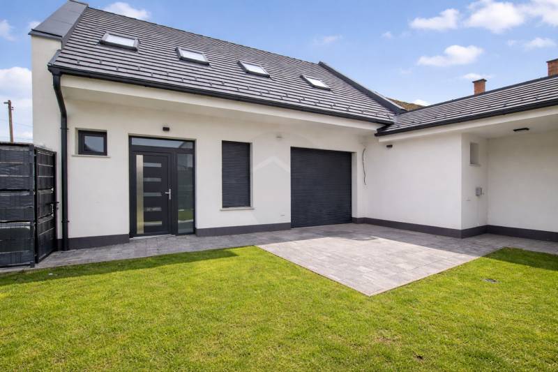 Baja csendes, nyugodt részén kínálunk megvételre egy 2024-ben épült, modern kialakítású, még nem lakott, kétszintes, téglaépítésű családi házat. A 145 m²-es lakótér egy 250 m²-es, parkosított telken helyezkedik el, ahol az öntözőrendszerrel gondozott udvar és a 12 m²-es terasz kellemes, nyugodt életteret biztosít a mindennapokhoz. A ház egész nap napfényes, világos belső tereit átgondolt kialakítás és modern megjelenés jellemzi.A földszinten a tágas, egybenyitott konyha–nappali–étkező a családi élet központja, amelyhez egy külön szoba, kamra és fürdőszoba kapcsolódik, valamint közvetlen átjárás nyílik a garázsból a lakótérbe. Az emeleten három hálószoba, gardrób, tároló és egy további fürdőszoba kapott helyet, így a ház ideális nagyobb család számára is. A szobák laminált burkolatot kaptak, a komfortérzetet hőszivattyús fűtés, klímák és kedvező H tarifa biztosítjanyilászárok 3 rétegűek.Az elektromos garázskapu, a biztonsági bejárati ajtó és a kaputelefon a mindennapi kényelmet és biztonságot erősítik. A modern műszaki tartalom és a nyugodt környezet elegáns, korszerű otthont kínál azoknak, akik új építésű, minőségi ingatlant keresnek Baján.Legyen Ön ennek az ingatlannak az első lakója!Irányár: 98.600.000 Ft