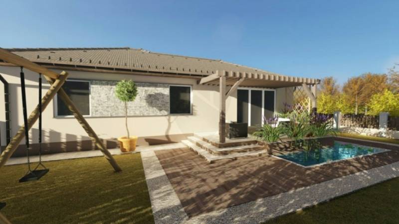 Győr közelében Pannonhalmán, újonnan épülő, igényes kialakítású, tégla építésű családi ház leköthető.A nappali + három szobával(vagy akár több szobával) rendelkező ingatlan alapterülete nettó 100 m2, mely igény szerint módosítható.A praktikusan tervezett házban a szobákon kívül tágas és napfényes amerikai konyhás nappali, gardrób, kamra, szélfogó, közlekedő, fürdőszoba+wc, háztartási helyiség és egy külön mellékhelyiség is kialakításra kerül.Az élhető méretű telek összesen 930 m2-es, mely 30%-ban beépíthető.A feltüntetett vételár az emelt szintű fűtés kész árat és a telek árát tartalmazza, de igény esetén kulcsra kész befejezésre is van lehetőség!Továbbá az ár tartalmazza a komplett tervezői díjat(gépészet, metszetek, statika, energetika, engedélyek), plusz egy inverteres(hűtő-fűtő) klímát!A jelenlegi árajánlatban az otthon melegéről gáz-cirkó kazán gondoskodik, padlófűtéses hőleadással, de a fűtésrendszer is az építtető igényei alapján módosítható!A részletes műszaki leírást és az Építőipari cég weboldalát kérésére e-mailben elküldöm.Más az elképzelése? Válassza ki Ön a saját elképzeléseinek megfelelő alaprajzot!Amennyiben teljesen egyedi tervezést szeretne, az is lehetséges!A képek látványtervek.Jól átgondolt tervezés, megfelelő szakmai tudás és háttér garantálja a MINŐSÉGI OTTHON megvalósítását!További kérdés esetén állok rendelkezésére!Amennyiben megbízható építtetőt szeretne, referenciamunkákkal, minőségi anyagokkal és kivitelezéssel, hívjon bizalommal akár hétvégén is!Teljes körű ügyintézéssel:- Ügyvéd- Biztosítás- Hiteltanácsadás- Generálkivitelezés- Ingatlanértékesítés- Teljeskörű ingatlanfelújítás- CSOK, babaváró, áfa visszaigénylés - állunk rendelkezésére!