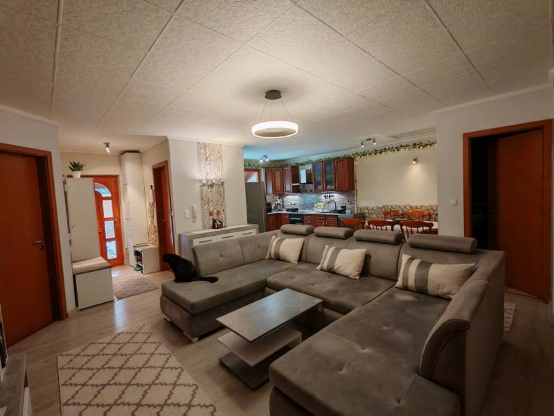CSAK NÁLUNK!Az ár alku képes! Eladó kertkapcsolatos, olcsó fenntartású lakás Pécel–Kopaszhegyen. Pécel, Kopaszhegy városrészében, csendes, egyirányú utcában eladó egy 90,71 m² nettó alapterületű, 3 + 1 fél szobás, két fürdőszobás lakás, amely ikerház jelleggel működik, mégis valódi önállóságérzetet nyújt.A lakás 300 m² telken fekszik, a megközelítés pedig egy 90 m²-es, zárt, közös használatú úton biztosított – nyugodt, biztonságos környezetben.Főbb jellemzők:• Építés éve: 2004• Tető: cserép, a födém szigetelt fa • Állapot: jó, folyamatosan karbantartott• Fűtés és melegvíz: VAILLANT típusú kombi cirkó• Hőleadás: komfortos padlófűtés + a nagy fürdőkben törölköző szárító radiátor• Alternatív fűtés/hűtés: 2 db, 3 éves hűtő-fűtő klíma• Falazat: 38 cm tégla + hőszigetelő vakolat (összesen ~40 cm)• Nyílászárók: kétrétegű üveggel ellátott, SOFA típusú fa ablakok, rajta szúnyogháló védelemmel. • Nagyméretű szobák, remek elrendezés• Hangszigetelés: a két lakás között dupla falazat, közte szigetelés (0,25 -0,15-0,25 cm) nincs áthallás • Alacsony rezsi• Két gépjármű részére kialakított, fedett parkoló a ház mellett• 1x32A áll rendelkezésre, de az óradobozig, az ipari áram bejönPraktikus extrák:• éléskamra• gardróbszoba, beépített szekrényekkel• beépített gépesített konyhabútor• két fürdőszoba WC-vel• beépített szekrények (mind a vételár részét képezik)• könnyen megközelíthető padlásA kertvárosi környezetnek köszönhetően csend, nyugalom és béke jellemzi az ingatlant – ideális választás családoknak, home office-ban dolgozóknak vagy mindazoknak, akik a városi kényelem mellett zöld környezetre vágynak.Helységlista:- 3,30 m² előszoba,- 37,38 m² nappali- konyha- étkező,- 12,13 m² szoba,- 12,13 m² szoba,- 9,84 m² félszoba,- 8,19 m² fürdőszoba,- 2,51 m² zuhanyzó +WC,- 5,23 m² gardróbHa egy modern, jól átgondolt elrendezésű, kertkapcsolatos otthont keres Pécel egyik kedvelt városrészében, ezt az ingatlant érdemes megnézni!Kiváló közlekedéssel és infrastruktúrával van a környék ellátva. Akár vásárlásról, akár munkába járásról, kocsival, vagy tömegközlekedéssel, CSAK AJÁNLANI tudom.Az ingatlan rugalmasan megtekinthető, PER, IGÉNY és TEHER mentes!JÖJJÖN el, NÉZZE meg, SZERESSEN bele, TEGYEN ajánlatot!A GDN HitelCentrum, KÖTELEZETTSÉG MENTESEN és DÍJMENTESEN, versenyezteti Önért a bankok hitelajánlatait. Ismerje meg a vissza nem térítendő állami támogatásokat!* Otthon Start hitel,• babaváró,• CSOK+• hitel,* személyi kölcsön,• megtakarítás,• és EGYÉB BANKI tranzakcióban segítségére lehetünk!• Igény esetén, ÜGYVÉDI segítséget nyújtunk, MEGFIZETHETŐ áron!Ha az ingatlannal kapcsolatban bővebb felvilágosításra lenne szüksége, hívjon bizalommal, állok rendelkezésére!Videólink: http://youtu.be/AvdUrpsB0WkF.M.