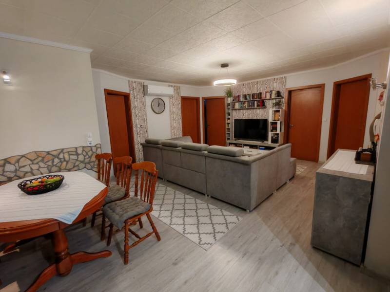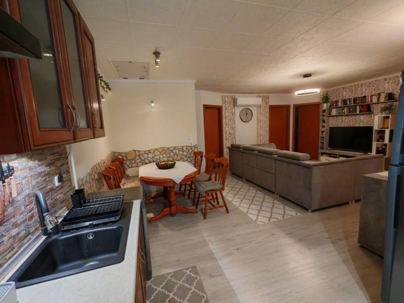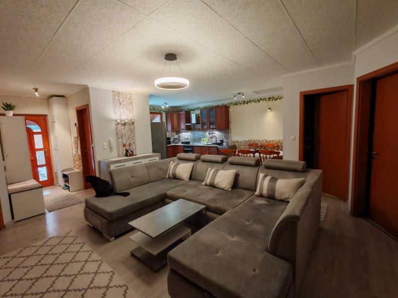 CSAK NÁLUNK!Az ár alku képes! Eladó kertkapcsolatos, olcsó fenntartású lakás Pécel–Kopaszhegyen.Pécel, Kopaszhegy városrészében, csendes, egyirányú utcában eladó egy 90,71 m² nettó alapterületű, 3 + 1 fél szobás, két fürdőszobás lakás, amely ikerház jelleggel működik, mégis valódi önállóságérzetet nyújt.A lakás 300 m² telken fekszik, a megközelítés pedig egy 90 m²-es, zárt, közös használatú úton biztosított – nyugodt, biztonságos környezetben.Főbb jellemzők:• Építés éve: 2004• Tető: cserép, a födém szigetelt fa• Állapot: jó, folyamatosan karbantartott• Fűtés és melegvíz: VAILLANT típusú kombi cirkó• Hőleadás: komfortos padlófűtés + a nagy fürdőkben törölköző szárító radiátor• Alternatív fűtés/hűtés: 2 db, 3 éves hűtő-fűtő klíma• Falazat: 38 cm tégla + hőszigetelő vakolat (összesen ~40 cm)• Nyílászárók: kétrétegű üveggel ellátott, SOFA típusú fa ablakok, rajta szúnyogháló védelemmel.• Nagyméretű szobák, remek elrendezés• Hangszigetelés: a két lakás között dupla falazat, közte szigetelés (0,25 -0,15-0,25 cm) nincs áthallás• Alacsony rezsi• Két gépjármű részére kialakított, fedett parkoló a ház mellett• 1x32A áll rendelkezésre, de az óradobozig, az ipari áram bejönPraktikus extrák:• éléskamra• gardróbszoba, beépített szekrényekkel• beépített gépesített konyhabútor• két fürdőszoba WC-vel• beépített szekrények (mind a vételár részét képezik)• könnyen megközelíthető padlásA kertvárosi környezetnek köszönhetően csend, nyugalom és béke jellemzi az ingatlant – ideális választás családoknak, home office-ban dolgozóknak vagy mindazoknak, akik a városi kényelem mellett zöld környezetre vágynak.Helységlista:- 3,30 m² előszoba,- 37,38 m² nappali- konyha- étkező,- 12,13 m² szoba,- 12,13 m² szoba,- 9,84 m² félszoba,- 8,19 m² fürdőszoba,- 2,51 m² zuhanyzó +WC,- 5,23 m² gardróbHa egy modern, jól átgondolt elrendezésű, kertkapcsolatos otthont keres Pécel egyik kedvelt városrészében, ezt az ingatlant érdemes megnézni!Kiváló közlekedéssel és infrastruktúrával van a környék ellátva. Akár vásárlásról, akár munkába járásról, kocsival, vagy tömegközlekedéssel, CSAK AJÁNLANI tudom.Az ingatlan rugalmasan megtekinthető, PER, IGÉNY és TEHER mentes!JÖJJÖN el, NÉZZE meg, SZERESSEN bele, TEGYEN ajánlatot!A GDN HitelCentrum, KÖTELEZETTSÉG MENTESEN és DÍJMENTESEN, versenyezteti Önért a bankok hitelajánlatait. Ismerje meg a vissza nem térítendő állami támogatásokat!* Otthon Start hitel,• babaváró,• CSOK+• hitel,* személyi kölcsön,• megtakarítás,• és EGYÉB BANKI tranzakcióban segítségére lehetünk!• Igény esetén, ÜGYVÉDI segítséget nyújtunk, MEGFIZETHETŐ áron!Ha az ingatlannal kapcsolatban bővebb felvilágosításra lenne szüksége, hívjon bizalommal, állok rendelkezésére!Videólink:http://youtu.be/AvdUrpsB0WkF.M.