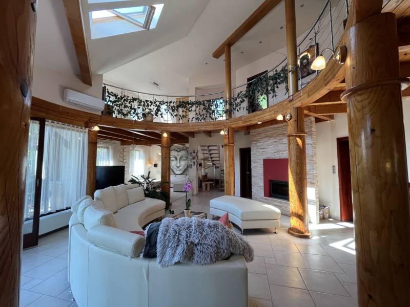 Exkluzív családi ház Veresegyház legszebb, zöldövezeti részén!Nyugodt, természetközeli környezetben kínálunk megvételre egy magas műszaki tartalommal, kifinomult ízléssel megépített prémium családi otthont, amely a tágas élettereket, az időtálló minőséget és a privát életstílust helyezi előtérbe.Reprezentatív terek & elegáns arányok:• 297 m² gondosan megtervezett lakótér• 6 méteres belmagasságú, különleges kivitelezésű, galériás nappali, kandallóval• nagyvonalú amerikai konyha kényelmes étkezővel• többfunkciós tetőtéri szint – hatalmas dolgozószoba, hálószobák, vendégtér vagy privát lakrész kialakításáraA belső terek tágas és harmonikus arányai, valamint a természetes fény jelenléte jellemzi az egész épületet.Prémium anyaghasználat & beépített megoldások:• porotherm téglából épült, szigetelt ház• különleges, fa oszlopos tartószerkezetek• számos egyedileg tervezett beépített bútor• diszkréten integrált tárolómegoldások• minőségi kivitelezés, időtálló részletekPrivát kert & kültéri luxus:• 800 m²-es, parkosított, intim kert• automata öntözőrendszer kiépítve• 60 m²-es DNy-i tájolású, fedett terasz, székely dézsával• két különálló faház - egy kisebb és egy nagyobb tároló• tökéletes helyszín pihenéshez, családi eseményekhez, vendéglátáshozKényelmes parkolás & praktikum:• garázs• fedett autóbeálló• bőséges tárolási lehetőségek a telken és az épületen belül isKorszerű technológia & fenntartható komfort:• padlófűtés kondenzációs kazánról, radiátorokkal kiegészítve• alternatív megoldások: kandalló, ionkazán• napelemek, napkollektor, klímaberendezések• víz kezelő rendszer, riasztó• energiahatékony, tudatosan kialakított gépészetKitűnő lokáció – természet és elérhetőség egyensúlya:• Csendes, zöldövezeti környezet• Budapest gyorsan és kényelmesen elérhető• Ideális külföldi vásárlók számára is, akik értékelik a repülőtér közelségét és a prémium életstílustEz az otthon azok számára készült, akik nem kompromisszumokban, hanem életminőségben gondolkodnak.