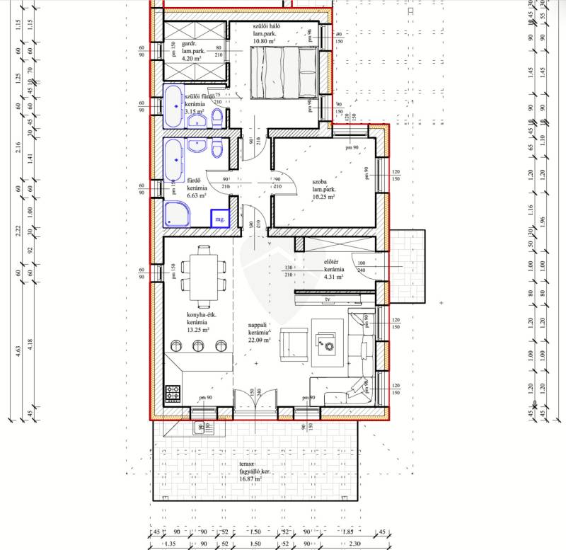 *** Szeretne új építésű környezetben élni a családjával egy modern új otthonban? Akkor ezt a lehetőséget ne hagyja ki! ***Tura közkedvelt részén egy újonnan megnyílt utcában kínálom eladásra egy új építésű ikerháznak az 1. lakását (utcafronti), amely nettó 74,68 m2 lakórésszel + 16,87 m2 terasszal és 8 m2-es tárolóval fog rendelkezni. Az elosztása rendkívül PRAKTIKUS, hiszen tágas nappali + konyha kerül kialakításra, illetve a szülői hálószobához egy saját fürdőszoba és gardrób tartozik. A telek mérete összesen 832 m2, összközművesitett. Ez a méret kerül felosztásra a két épület között.Főbb tulajdonságok:- Porotherm 30-as TÉGLA + 10 cm-es grafitos szigetelés- Tető betoncserepet kap, a födém pedig 25 cm-es kőzetgyapot hőszigetelést- 3 rétegű műanyag nyílászárók, több ponton záródó bejárati ajtó- fűtésről KONDENZÁCIÓS gázkazán gondoskodik padlófűtésen keresztül, de igény szerint kérhető hőszivattyús fűtés (értékegyeztetés mellett)- Burkolatok, szaniterek, szerelvények saját igény szerint választhatóak mégKözös lakórész nem érintkezik, csak a tárolóval és a garázzsal kapcsolódnak egymáshoz az épületek. A lakóépület fenntartása ALACSONY KÖLTSÉGŰ lesz, köszönhetően a minőségi anyagok használatának.Tura egy szépen fejlődő település, több közintézmény, bevásárlási lehetőség, piac és egyéb üzlet is megtalálható.Budapestről az M3-as autópálya használatával 30-40 perc alatt elérhető a település autóval és tömegközlekedéssel egyaránt (busz, vonat).Várható befejezés 2026. III. és IV. negyedév.További információért hívjon bizalommal! Kedvező finanszírozásban is segítséget nyújtunk, így akár egy kézben tudhatja a teljes vásárlás folyamatát!
