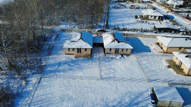 Kókán eladó 4db újépítésű ikerház külön kerített 530 m2 telkeken az Újvilág utcában!A házakat fedett gépkocsibeállóval kötik össze, így nincs közös fal.Az utcafronti házak ára 61.9m, a hátsó 58.9m Ft.-Telek mérete: 530 m²-Nettó hasznos alapterület: 97 m²-Földszintes ikerfélKivitelező és referencia:A kivitelező több azonos terv alapján készült ingatlant valósított meg Sülysápon és KókánElérhető támogatások:-CSOK Plusz-Otthon StartSzerkezet és szigetelés:-Falazat: 30 cm nútféderes tégla-Födém: fafödém-Tetőfedés: antracit színű betoncserép-Homlokzat: 15 cm EPS hőszigetelés-Padló: 10 cm Austrotherm AT-N100 szigetelés-Vízszintes födém: 25 cm ásványgyapot szigetelésNyílászárók:-Hat légkamrás, háromrétegű üvegezéssel szerelt ablakokFűtés:-Monoblokkos hőszivattyús rendszer-PadlófűtésAlap műszaki tartalom (választható keretösszegekig):-Hidegburkolat: 3.000 Ft/m²-Melegburkolat: 3.000 Ft/m²-Csaptelepek: 15.000 Ft/db-Kád vagy zuhanyzó: 40.000 Ft-Beltéri ajtók: 35.000 Ft/dbElektromos kiépítés:-Szobánként 3 konnektor-Nappaliban 4 konnektor + internet és kábel TV kiállás-Konyhában 6 konnektor-Világítás helyiségenként 1 pont-Kábeltévé előkészítésTovábbi lehetőségek:-Magasabb kategóriájú műszaki tartalom is választható a különbözet finanszírozásával-Riasztórendszer előkészítés-Kapumozgató elektronika előkészítésIgény esetén komplett tervdokumentáció és részletes műszaki leírás biztosítottÁtadás:2026. II. negyedévTeljes körű ingyenes tanácsadás, hitelügyintézésIntor Ingatlan