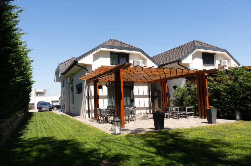 RITKA! Ha olyan otthont keresel, ahol a kertkapcsolat természetes, a szomszéd mosolyog, és a gyerekek szabadon bicikliznek az utcában – akkor megtaláltad.A Sissy Villa Park nem csak egy lakópark – egy életérzés. Amerikai hangulat Mogyoródon: kerítés nélküli házak, rendezett előkertek, közösségi programok, családias légkör. Itt a lakók ismerik egymást, figyelnek a másikra, mégis megmarad a privát tér.A kínált ingatlan egy 2020-ban épült ikerházfél, de külön helyrajzi számon, jogi és funkcionális értelemben is önálló családi ház. Főbb jellemzők: • Nappali + 3 hálószoba • 2 teljes értékű fürdőszoba • Modern gázcirkós fűtés • Praktikus alaprajz • Intim kertkapcsolat • Kellemes terasz Az ikerfelek csupán egy rövid falszakaszon érintkeznek, a kivitelezés pedig gondoskodik a zajmentes, nyugodt életről. Az építéskori teljes tervdokumentáció rendelkezésre áll. A megközelítés Budapestről kb 15-20p autóval. Ha egy barátságos, mégis elegáns környezetre vágysz, ahol a nyugalom és a közösség kéz a kézben jár – akkor ez az otthon neked szól.