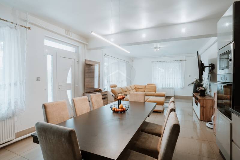 Eladó ingatlan Gödöllőn, a Fenyves városrészben! Ingatlanbeszámítás is érdekes lehet, értékegyeztetéssel Budapesten, Pest megyében, vagy megyeszékelyen. A Fenyvesi Nagyúton található, összesen 516 m² hasznos alapterületű (bruttó 600 m²-es) épület egy 1.408 m²-es telken helyezkedik el. Az ingatlan jogilag két különálló lakóházként van nyilvántartva, amelyekben, valamint egy melléképületben összesen hat apartman került kialakításra. A fűtés típusa apartmanonként eltérő: egyes lakrészekben gázkazán biztosítja a meleget, míg másokban vegyestüzelésű kazán működik.A nagyobb épületA telken lévő két épület közül a korábban, 1984-ben épült ház háromszintes, összesen 240 m² alapterületű. A földszint 60 m²-es, itt kapott helyet egy tágas amerikai konyhás nappali, a lépcsőház és a terasz. Az első emelet 90 m²-es, ahol három hálószoba, egy kádas fürdőszoba és egy erkély található. A második szint ugyanezzel az elrendezéssel alakítható ki, ám ez a rész jelenleg befejezetlen állapotban van. Az erkélyről és a felsőbb szintekről lenyűgöző panoráma nyílik a környékre.Ez az épület 2023-ban teljes körű felújításon esett át, amely magában foglalta az elektromos hálózat, a gépészet, a nyílászárók, a burkolatok és a konyhabútor cseréjét is. Igény esetén az emeleti szintek külön bejárattal is elláthatók, mivel a lépcsőház az épület szélén helyezkedik el, és a telek mérete lehetővé teszi ezt a megoldást.A földszinten, külön bejárattal egy 28 m²-es kis apartman is helyet kapott.A második épületA 2007-ben épült másik ház földszint + emelet kialakítású, 30 cm vastag Porotherm téglából épült.A földszinten két apartman található:Egy 78 m²-es, nappali + két hálószobás, sarokkádas fürdőszobával és külön WC-vel rendelkező lakás.Egy 32 m²-es kisebb lakrész, ahol a fürdőszoba jelenleg külön bejárattal rendelkezik, de könnyedén egybenyitható a lakótérrel.Az emeletre külső lépcsőn keresztül lehet feljutni, ahol egy modern, nappali + két hálószobás, 68 m²-es apartman kapott helyet.Melléképületből kialakított stúdiólakásA hatodik apartman egy 60 m²-es melléképületből lett átalakítva. Jelenleg egy tágas stúdiólakásként funkcionál, ahol a fürdőszoba külön helyiségben található. Igény szerint egy hálószoba is leválasztható.Az udvaron korábban autókereskedő vállalkozás telephelye működött, ehhez az infrastruktúra most is rendelkezésre áll. Kinek ajánljuk?Ez az ingatlan kiváló lehetőség befektetők számára, vagy azoknak, akik több lakrész kiadásából szeretnének stabil bevételt biztosítani maguknak. Az elhelyezkedés, az apartmanok száma és az ingatlan adottságai mind-mind remek lehetőséget kínálnak a hosszú távú hasznosításra.