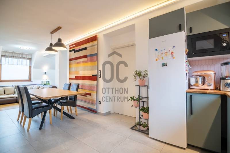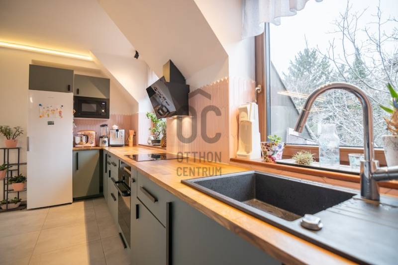 Prémium minőségű, örökpanorámás, 5 szobás lakás Sasadon– zöld környezet, csend, tágas terekHa olyan otthont keres, ahol a valódi nyugalom, a természet közelsége és a minőségi kialakítás együtt van jelen, akkor ez a sashegyi lakás kitűnő választás. Családoknak, pároknak és mindenkinek, aki értékeli a rendezett környezetet és a tágas, világos tereket.Főbb adatok-Alapterület: Bruttó 120 m²-Szobák száma: 5-Belső kétszintes kialakítás-1987-ben épült, 8 lakásos társasház legfelső szintjén-Saját garázs + kocsibeálló + külön tároló-Örökpanoráma a városra és a Sas-hegyreA lakás részleteiAlsó szint:-Tágas, amerikai konyhás nappali étkezővel-Szülői háló privát, dupla zuhanyzós fürdőszobával-Vendégszoba / dolgozószobaFelső szint:-Két különálló hálószoba-Külön fürdőszobaFelújítás és műszaki tartalom – prémium minőség kompromisszumok nélkül- ✓ Teljes körű felújítás 5 éve-Modern kondenzációs kazán, korszerű gépészet-Red Grandis + lucfenyő fa nyílászárók, automata redőnyökkel és szúnyoghálókkal-Padlófűtés + radiátor kombináció-Légkondicionálás-Belső hőszigetelés-Tölgyfa parketta és lépcső-Letisztult, világos enteriőr minden helyiségben, zöldre néző ablakokkalA lakás kivételes hangulatú: minden oldalról fák ölelik körbe, nyáron kevésbé melegszik át, télen pedig kifejezetten harmonikus hőérzetet biztosít.Tartozékok-✓ Saját, zárt garázs (15 m²)-✓ Kocsibeálló-✓ 6 m²-es külön tároló- Gondozott, közös használatú kertLokáció – Sasad, ahol valóban élmény lakniA XI. kerület egyik legkeresettebb része: csendes, zöld utcák, kiváló infrastruktúra, biztonságos környezet.A közelben:-Lauder Javne, Szent Angéla Gimnázium, Bethlen Gábor Ált. Iskola-Bölcsődék, óvodák néhány perc sétára-MOM Park, Hegyvidék Bevásárlóközpont, Tesco, SparJátszóterek, sportpályák, futó- és kerékpárutak-Kiváló közlekedés: 8E, 53, 108E, 139, 153 buszok-M1–M7 autópályák gyors elérésselKinek ideális?-Családoknak, akik hosszú távra keresnek igényesen felújított, fenntartható otthont-Pároknak, akik otthonról dolgoznak és fontos számukra a zavartalan, inspiráló környezet-Befektetőknek, akik értékálló ingatlant keresnek prémium lokációbanEz a lakás nem csak szép – kifejezetten jó energiájú, élhető, világos otthon, amely ritka adottságokkal rendelkezik. Jöjjön el, és nézze meg személyesen: a panorámát és a hangulatot képekben szinte lehetetlen visszaadni.